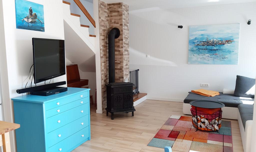 Dies ist ein neu renoviertes 200 Jahre altes Haus. Es ist für Familien mit Kindern geeignet. Die Fläche beträgt ca. 80 m2 auf zwei Etagen. Im Erdgeschoss befinden sich eine Küche, ein Esszimmer, ein Wohnzimmer, ein Badezimmer mit Dusche und eine Speisekammer. Zwei Schlafzimmer und ein weiteres Badezimmer mit Badewanne befinden sich im Obergeschoss. Ein Schlafzimmer hat ein Doppelbett 160x200 cm. Das zweite Schlafzimmer (Kinderzimmer) hat ein 140x200 cm großes Hochbett (IKEA Stora-Bett) und unter dem Bett befindet sich ein Sofa, das beim Herausziehen die gleiche Größe hat. Das Kinderzimmer ist mit Spielzeug, Malbüchern und Buntstiften ausgestattet. Das nächste Geschäft ist ca. 1 km entfernt und am besten mit dem Auto einkaufen. Der nächste Strand ist ca. 500 m entfernt.