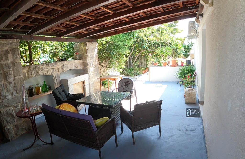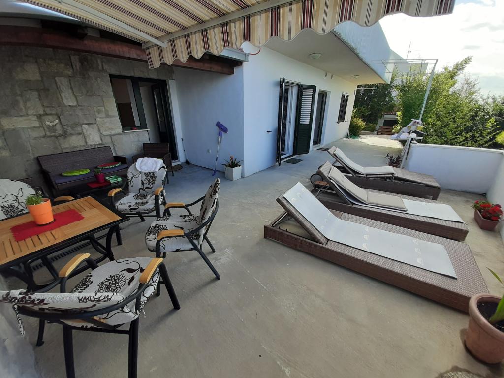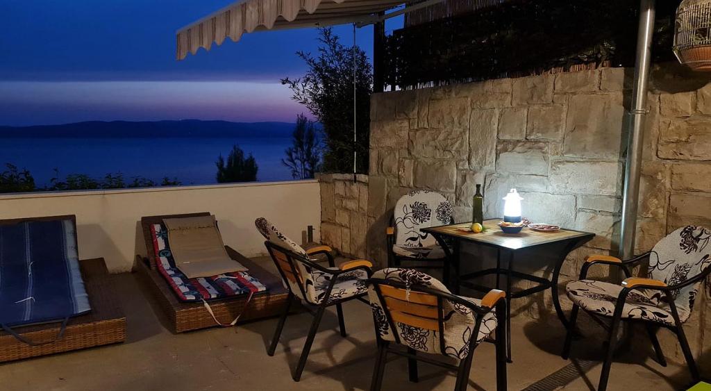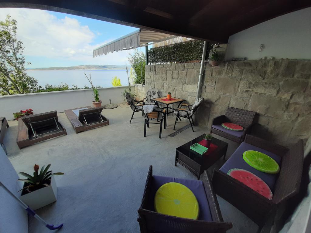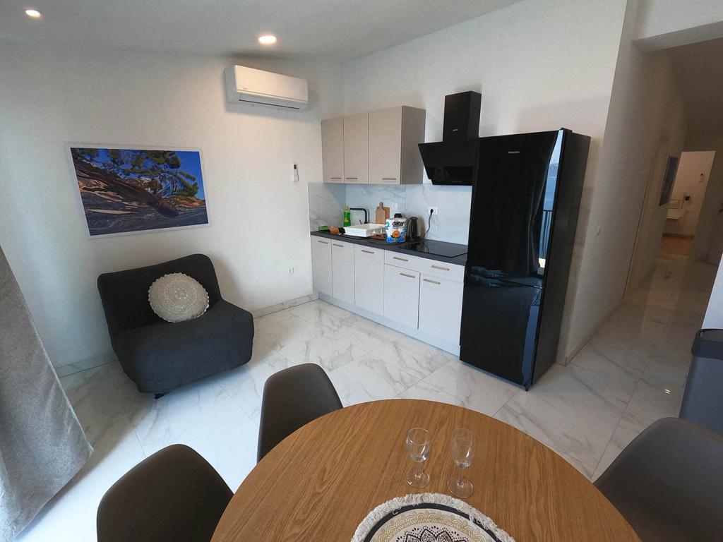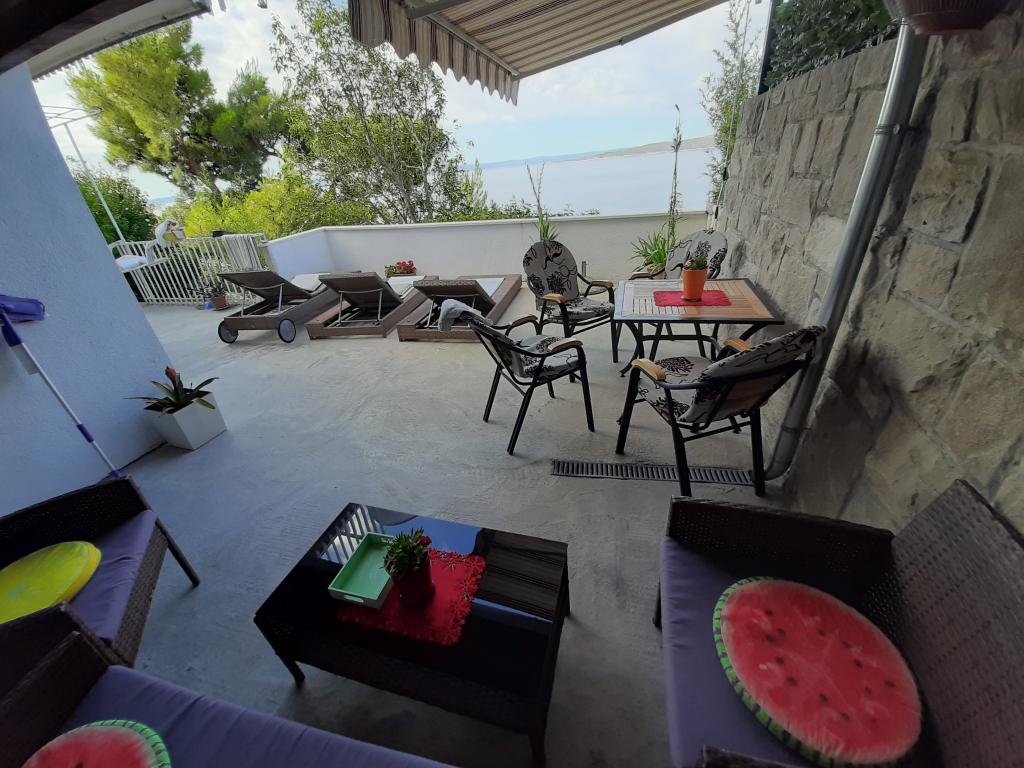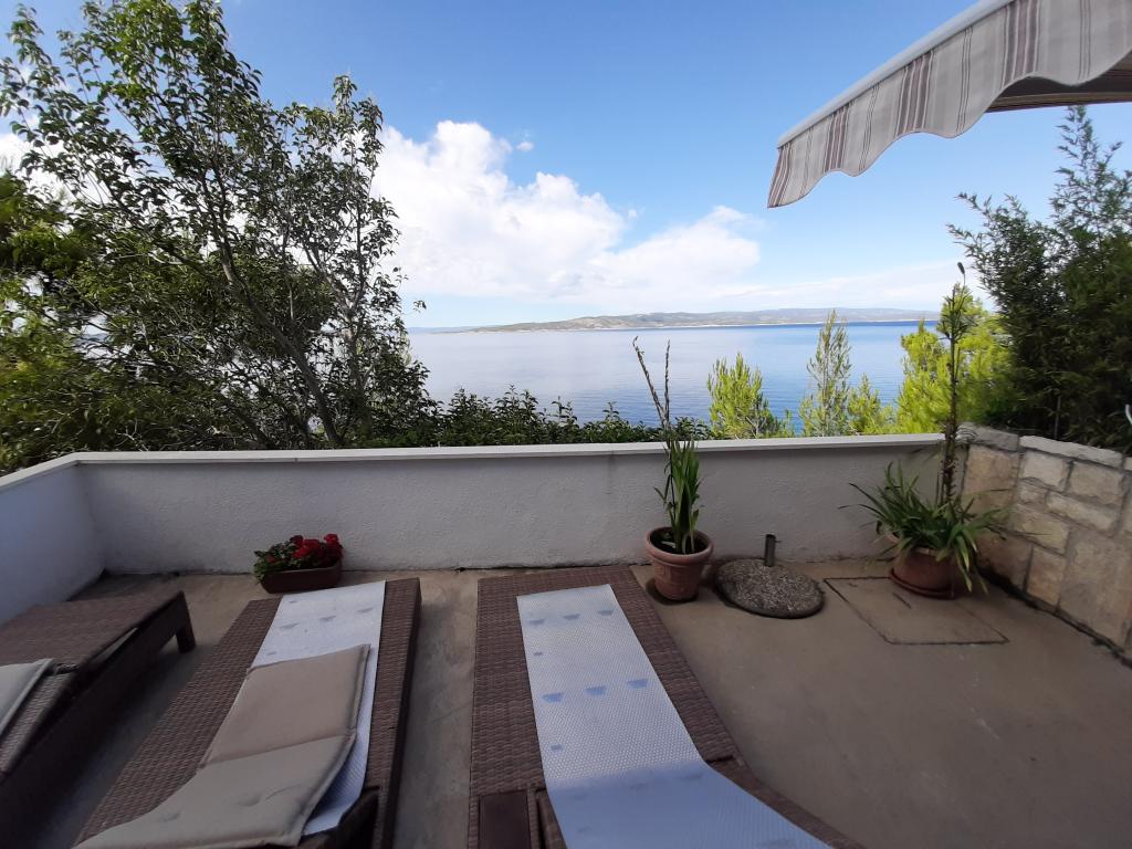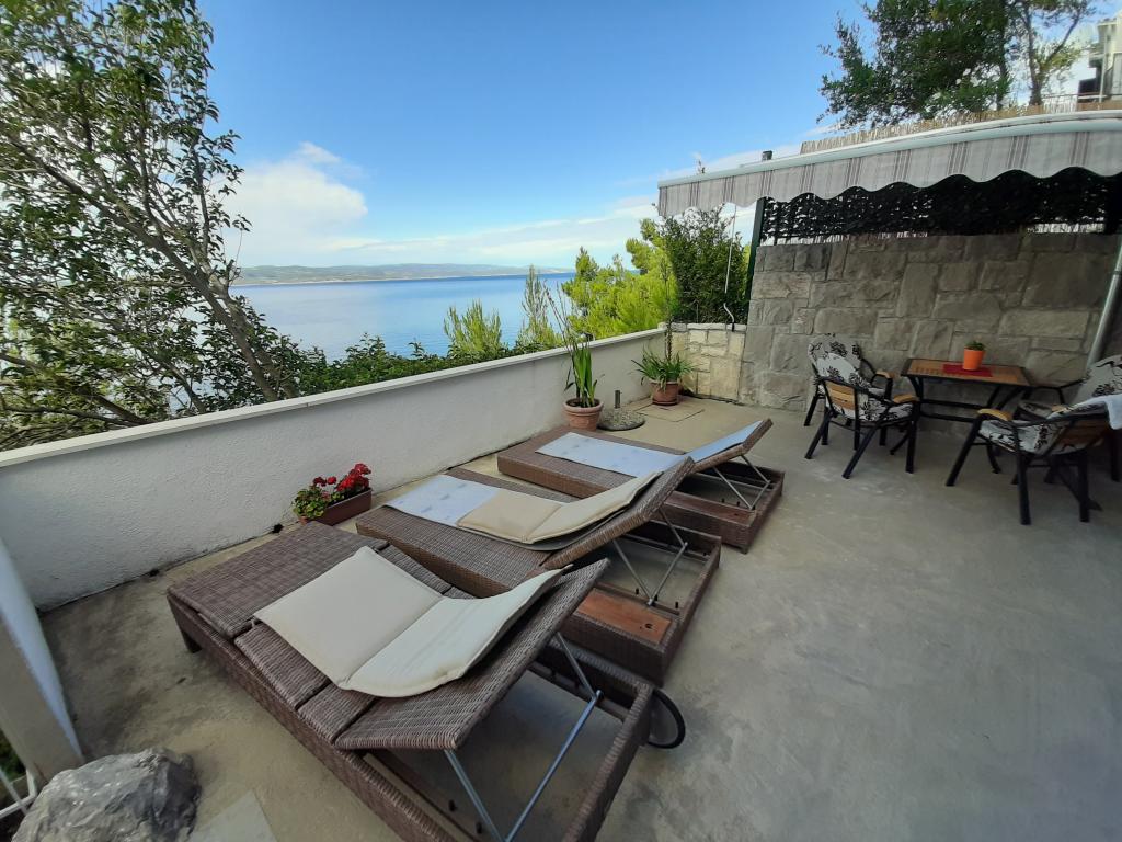 Neu renovierte und voll ausgestattete Wohnung in einer ruhigen Gegend zwischen Baska Voda und Brela, in der ersten Reihe zum Meer gelegen, über einem wunderschönen Strand. Die Anlage befindet sich 10 Minuten zu Fuß (ca. 500 m) vom Zentrum beider Orte entfernt. Große Terrasse mit Baldachin und Meerblick, 2 Doppelzimmer, zwei Badezimmer und Küche mit Zugang zur Terrasse. Alles neu. Die Wohnung befindet sich auf einer separaten Etage mit separatem Eingang, einem großen Garten, der von allen Nachbarn getrennt ist. Privatparkplatz im Schatten direkt über dem Haus.