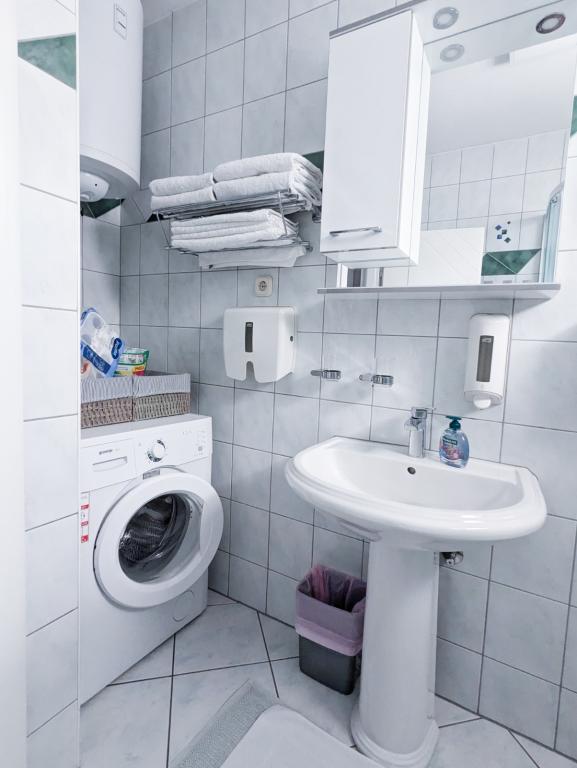 Die Wohnung ist komplett ausgestattet und liegt etwa eineinhalb bis zwei Gehminuten vom Strand entfernt.