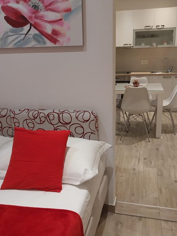Wir befinden uns im Zentrum von Baška Voda, aber in einer ruhigen Gegend abseits der sommerlichen Menschenmassen. Wir bieten Ihnen komfortabel eingerichtete Apartments, modern eingerichtet und komplett ausgestattet für Ihren unbeschwerten und angenehmen Urlaub. Wir betonen die Nähe des Meeres und des Strandes, der mit der Blauen Flagge ausgezeichnet ist!