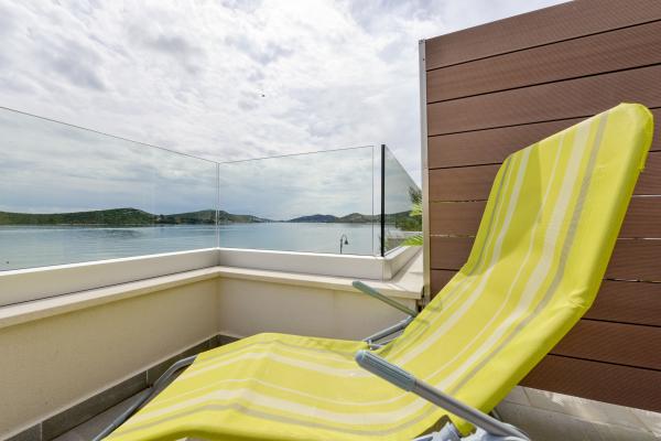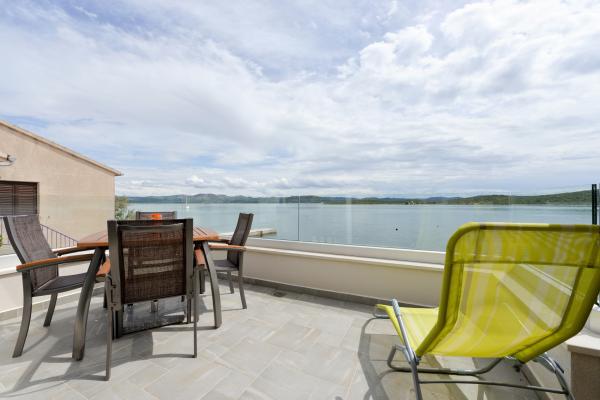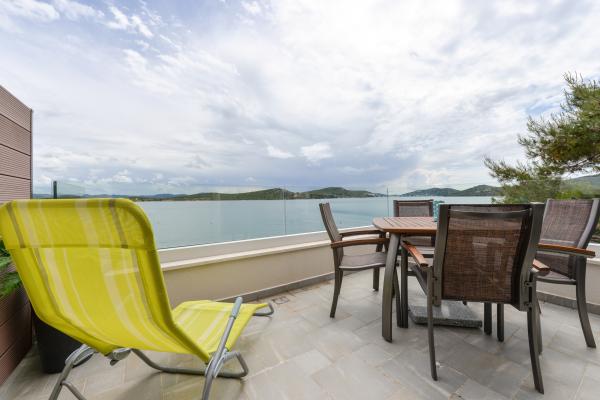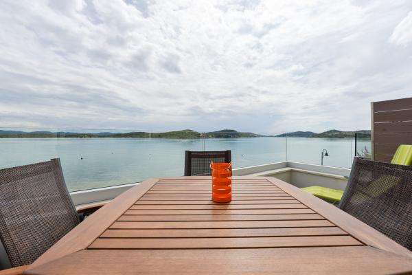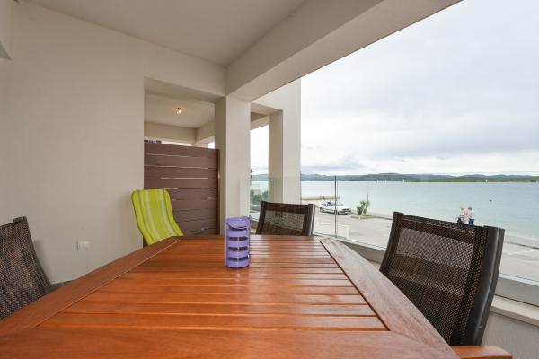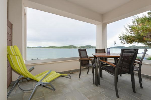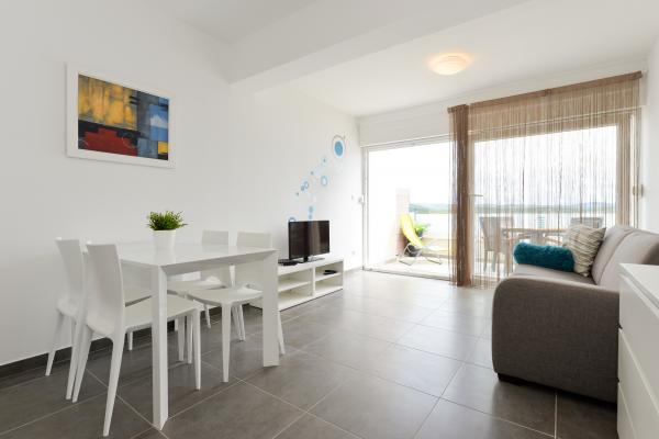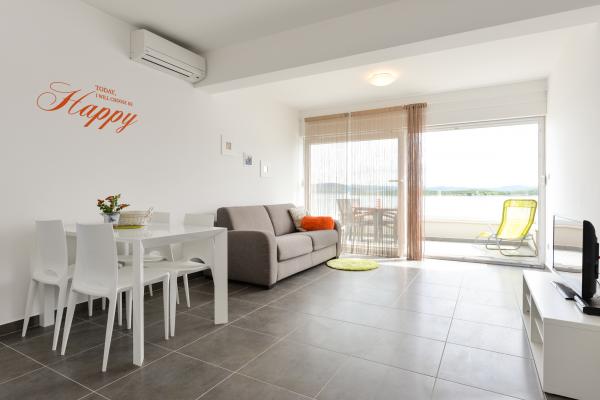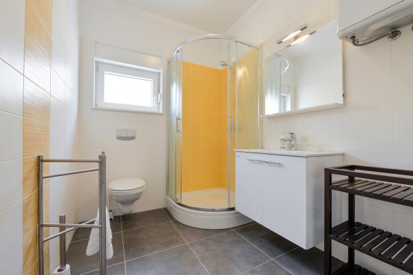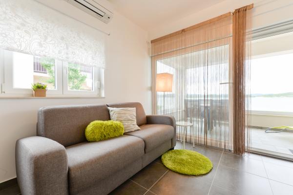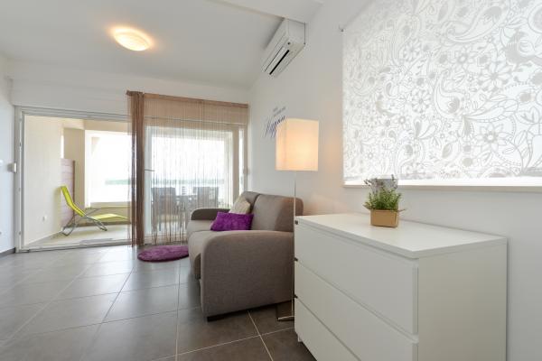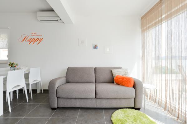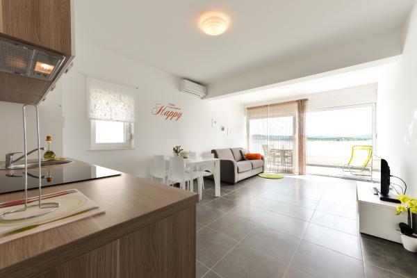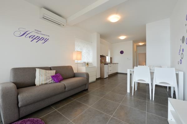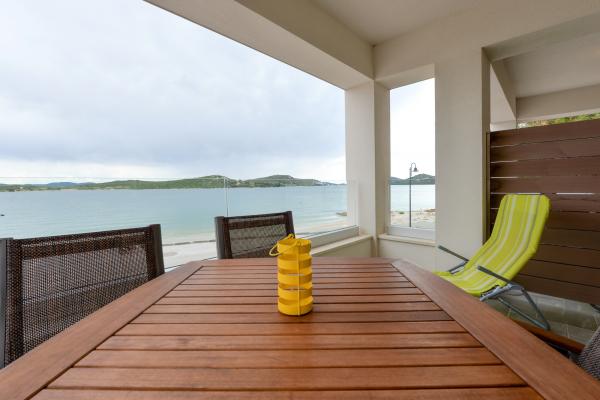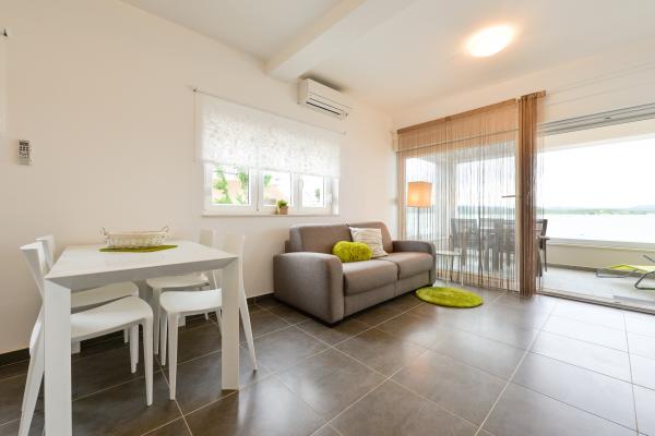 In unserem neugebautem Ferienhaus erwarten Sie 4 komfortabel eingerichtete Apartments mit je 40 m2 für je bis zu 4 Personen. Parkmöglichkeiten befinden sich von dem Haus. Die im Schatten gelegenen Terassen laden zum Grillen, ausruhen oder auch gemütlichen Abenden ein. Eine unbefahrene Strasse reilt Sie vom naheliegenden Kiesstrand, für den wir Ihnen gerne Sonnenliegen wie auch Sonnenliegen wie auch Sonnenschirme zur Verfügang stellen. Die Apartments sind stets sauber und bezugsfertig. Bars, Restaurants, Einkaufsläden sowie Post und Apotheke befinden sich 500m vom Haus entfernt.