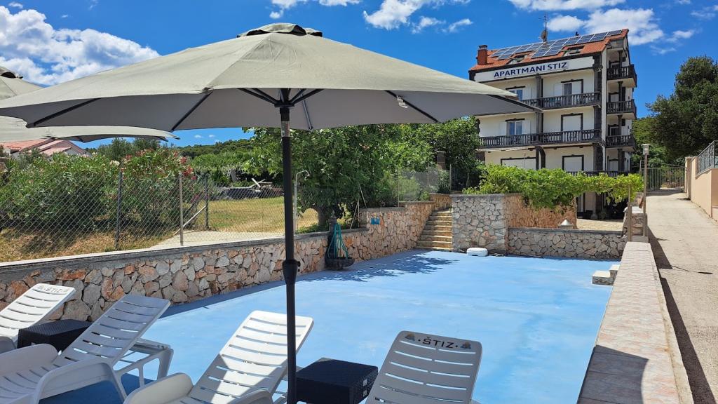 Apartmenthaus ŠTIZ-BETINA – Ihr idealer Urlaub am Meer! Direkt an der Küste in der Stadt Betina auf der Insel Murter gelegen, bietet das Apartmenthaus ŠTIZ-BETINA die perfekte Umgebung für einen erholsamen Urlaub. Unser angelegter Steinstrand ist mit Liegen und großen Sonnenschirmen ausgestattet, die Sie kostenlos nutzen können. Kommen Sie mit dem Boot? Wir bieten die Möglichkeit zum Zuwasserlassen und Festmachen für Schiffe bis zu 7 Metern Länge, mit gesichertem Parkplatz für einen Anhänger im umzäunten Hof. Lage: Das Haus liegt 1,5 km vom Zentrum von Betina entfernt, wo Sie die Altstadt, Geschäfte, Cafés, Restaurants und den Hauptstrand der Stadt finden. Die Insel Murter ist mit dem Auto gut erreichbar, da sie durch eine Zugbrücke, die zweimal täglich hochgezogen wird, mit dem Festland verbunden ist. Wir bieten: sechs Apartments (2+2) und vier Studios (2+1). Jede Wohneinheit verfügt über: eine voll ausgestattete Küche, Klimaanlage, kostenloses WLAN, Flachbild-SAT-HDTV, WC mit Dusche, Bettwäsche und Handtücher. Alle Apartments und Studios verfügen über einen wunderschönen Blick auf das Meer und den Garten.