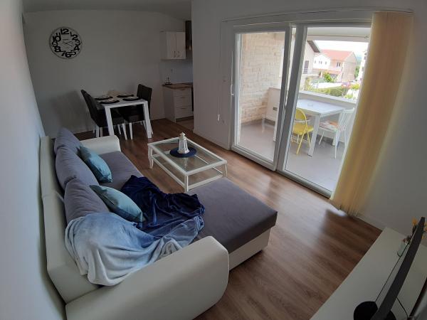 Voll ausgestattete und moderne Apartments in einer ruhigen Gegend von Biograd Moru.Objekt hat einen großen Garten, überdachter Parkplatz und Garage, ideal für Familien mit Kindern, aber auch für Menschen, die Ruhe, klares Wasser und schöne Strände zu suchen.