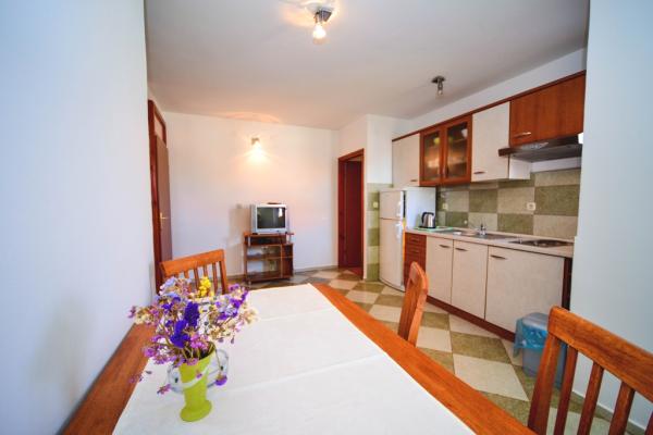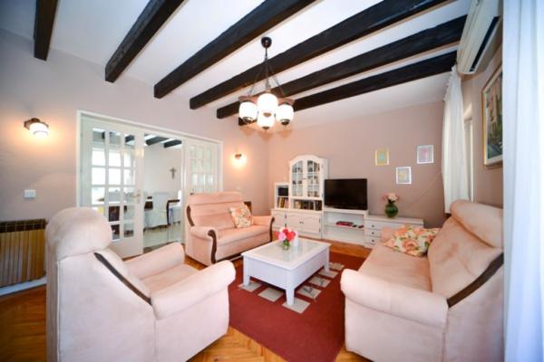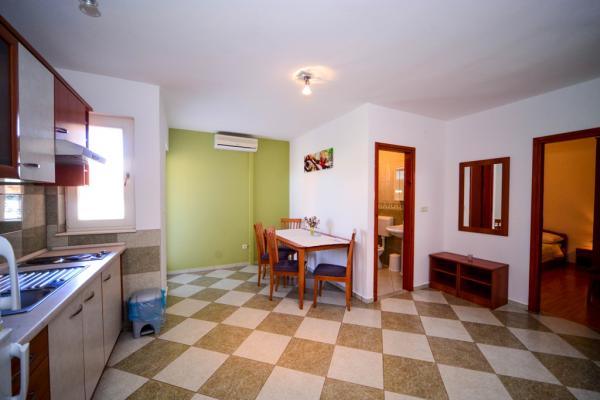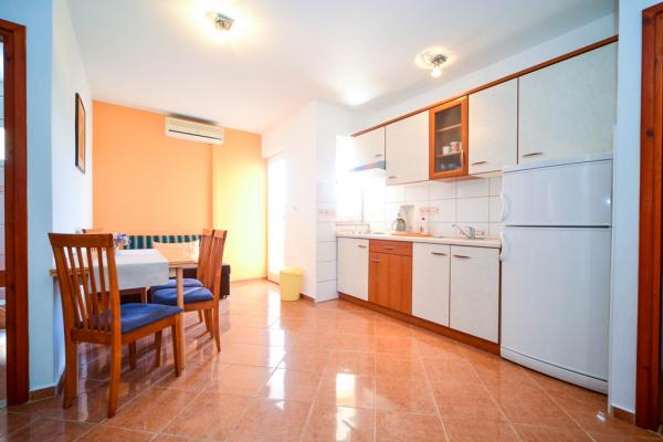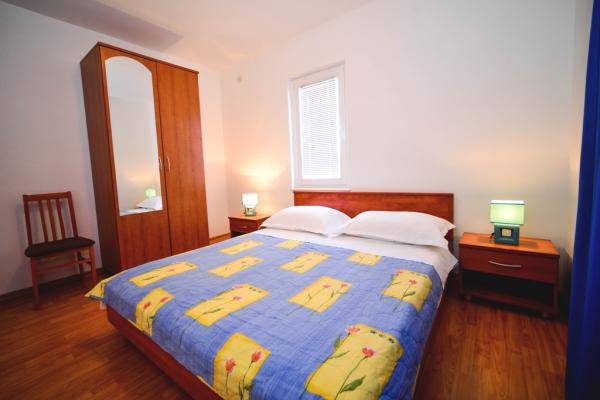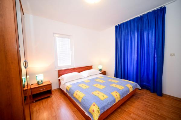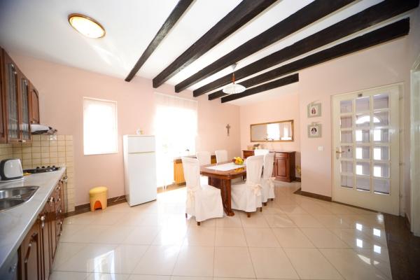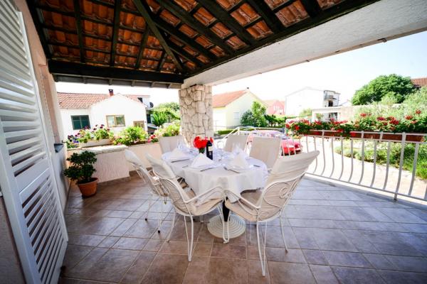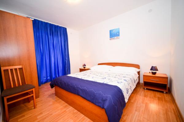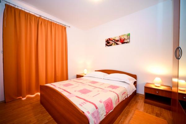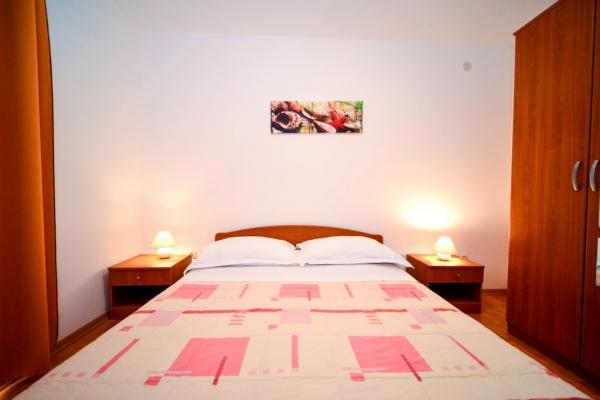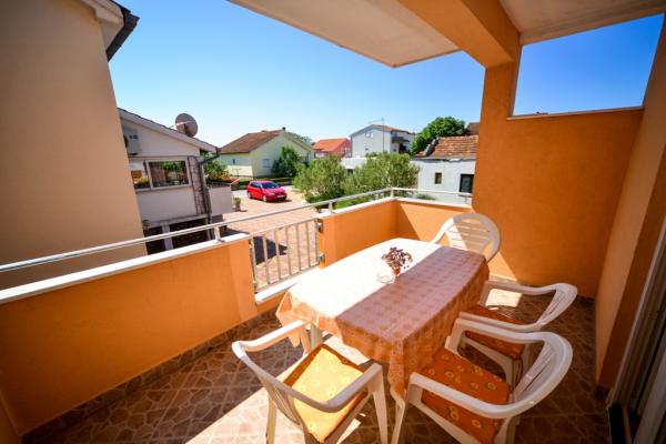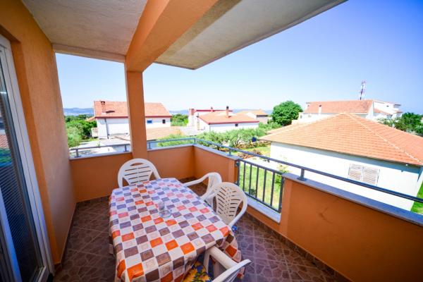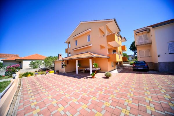 Charmant und neu renovierten Apartments in Biograd in einem ruhigen Teil der Stadt 6.month 45 EUR / Nacht für 4-5 Personen 7. und 8.mjesec 60eur/noć für 4-5 Personen Das Anwesen verfügt über eine geräumige 4-Zimmer-Wohnungen, jede Wohnung hat 50m2 + Balkon + Terrasse. Zwei Wohnungen sind auf der ersten Etage und zwei auf der 2. Etage mit Blick auf das Meer. Jede Wohnung verfügt über zwei Schlafzimmer mit Doppelbetten, Bad, Esszimmer, voll ausgestattete Küche, Balkon mit Zugang vom Schlafzimmer und eine große Terrasse, auf der aus dem Schlafzimmer und der Küche und Esszimmer austritt. Es gibt eine Möglichkeit, zusätzliche Betten, so dass die Wohnung bis zu 5 Personen beherbergen können. Der Parkplatz ist durch einen Zaun vor dem Haus umgeben. Jeder Besucher hat einen Parkplatz. Im Garten gibt es einen Grill / Kamin und eine Terrasse mit der Möglichkeit der Nutzung für alle Gäste. Der nächste Strand ist Bosa, Kieselstrand 10-15min zu Fuß.