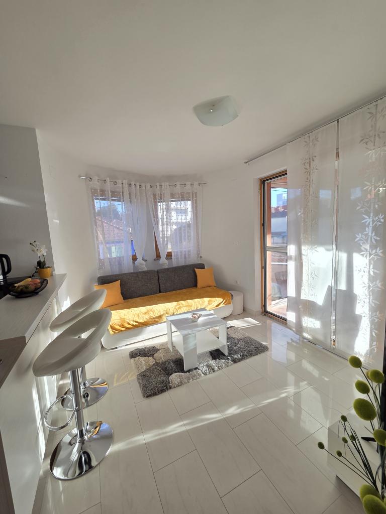 Wir waren in einer grünen Wohnung für 4 Personen. Die Wohnung ist schön, modern, tolle Lage, aber für den Preis von 120€ haben wir etwas mehr erwartet. Fehlende Kleinigkeiten, die wichtig sind und die Gäste dazu bringen, wiederzukommen oder nicht zurückzukommen. Für den angegebenen Preis haben wir mindestens ein Set mit 6 Gläsern, 6 Tellern, Löffeln und anderem Besteck erwartet. Wie in anderen Wohnungen, in denen wir früher in der Küche wohnten, sollten Spülmittel, etwas Zucker, Salz, evtl. Gewürze, etwas Öl, Essig und andere Notwendigkeiten für den ersten Moment reichen. In einigen anderen Apartments werden die Gäste mit einer Obstschale oder einer Flasche Wein begrüßt. Es gibt auch einen Sonnenschirm auf der Terrasse und bequeme Stühle. Die Terrasse ist daher nicht nutzbar. Im Wohnzimmer steht eine schöne Couch, die aber ziemlich unbequem ist, ebenso wie das Bett im Kinderzimmer. Das Fernsehen hat nur wenige grundlegende Fernsehprogramme. Alles in allem eine schöne Wohnung, nette Gastgeber, aber es gibt keinen zusätzlichen Service, der einen so hohen Preis rechtfertigen würde.
