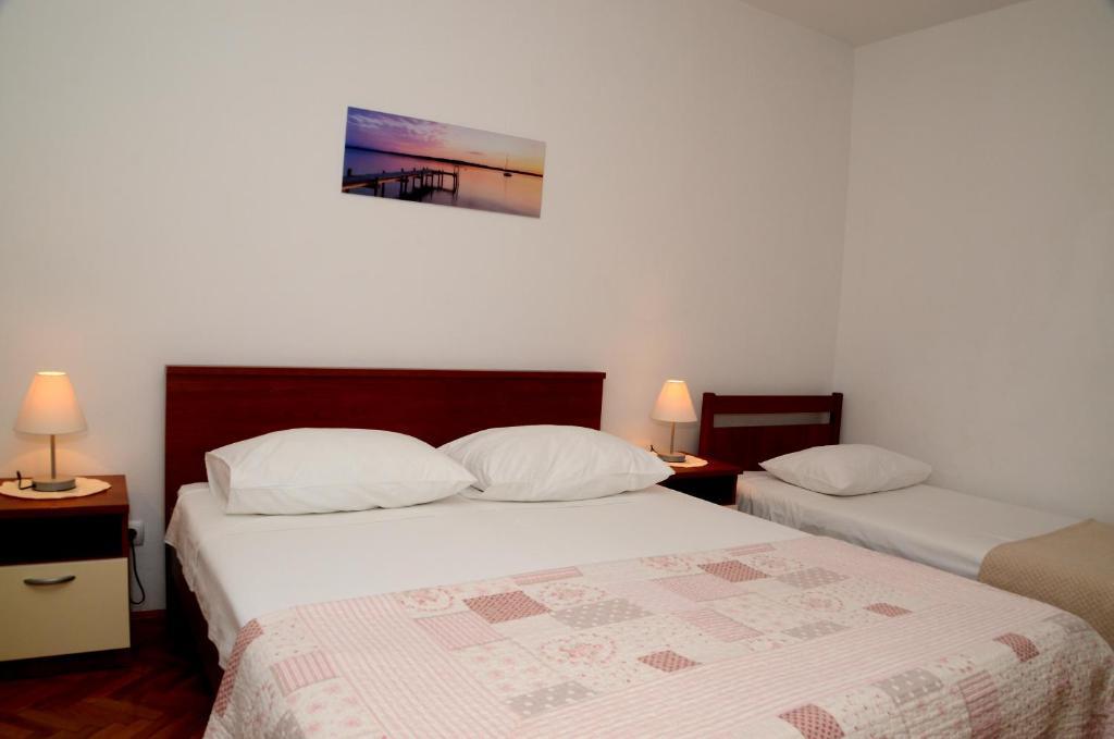 Wir wohnten in der Wohnung von Ante und Marija, wundervollen Gastgebern. Die Wohnung liegt ruhig und ist mit drei Schlafzimmern und zwei Badezimmern (ungewöhnlich für Ferienwohnungen) wirklich komfortabel. Die Schlafzimmer sind geräumig und mit bequemen Betten ausgestattet. Sie befindet sich im ersten Stock eines authentischen dalmatinischen Steinhauses – nicht in einem dieser hässlichen Glas-, Stahl- und Betonwürfel, die man heute baut! Es gibt einen großen, bepflanzten Garten, der auch als schattiger Parkplatz dient. Die Ausstattung entspricht der Beschreibung und ist gut ausgestattet. Einziger Kritikpunkt, wenn überhaupt, ist der Zugang zum Tor: Ich kam mit meinem Lancia Musa problemlos hinein, unser Freund mit seinem Siebensitzer hatte anfangs etwas Schwierigkeiten, aber beim zweiten Mal, mit etwas Vorsicht, schaffte er es problemlos. Ante ist jedoch hilfsbereit und erklärt die Tricks für den Zugang. Der Zugang zum Strand ist schnell und einfach. Ich, der ich gehbehindert bin, brauchte 10 Minuten, unsere Freunde nur halb so lange. Ich weiß nicht, was ich noch hinzufügen soll, außer dass ich das Haus der Familie Merle wärmstens empfehlen kann. Vielen Dank an Marija und Ante.