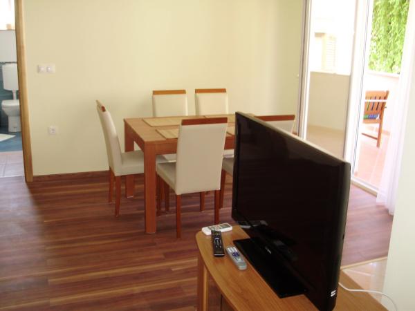 Nachdem wir schon in einigen Appartements von Tonciu. seiner Frau Lydia gewohnt haben, sind wir diesmal in das neue und renovierte Appartement im Zentrum eingezogen. (Wir sind diesmal ohne Kinder verreist) Für 2 Personen ist das Appartement ideal. Über Sat TV konnte ich sogar meinen Heimatsender (WDR TV u. Radio) hören und sehen. Schöne ruhige Terrasse. Ob man Selbstversorger ist, sich in guten Restaurants verwöhnen lässt oder nur Fastfood möchte. Es wird alles geboten. Was man braucht ist in unmittelbarer Nähe, angefangen vom Cafe mit WiFi, Minisupermarkt mit gutem Angebot, Bäckerei, Metzgerei usw. Der Markt mit frischem Gemüse und Fisch ist gleich um die Ecke. Der Hafen, Marina, Fähre sowie Bushaltestelle ebenfalls in unmittelbarer Nähe. Trotzdem ist es ruhig, weil das Appartement nicht direkt an der Straße liegt. Die Autobahnauffahrt ist in ca. 10 Km Entfernung. Von da geht es schnell nach Zadar, Sibenik und weiter entfernte Ausflugsziele wie Split, Plitvicer Seen, Krk etc. Man kann diese Ziele auch über die mautfreie Küstenstraße erreichen. Im Ort zu buchen sind Bootstouren zu den Kornaten, Tauchen, Fähre nach Tkon, Abenteuertour mit Militärjeep zu historischen Orten in der Umgebung (Jonathan Livingston).
