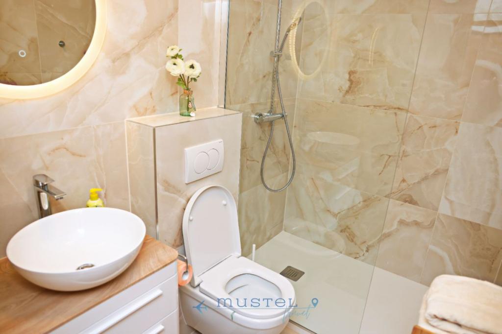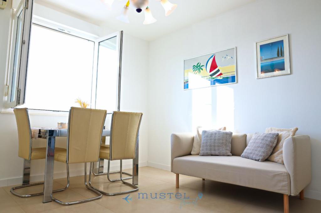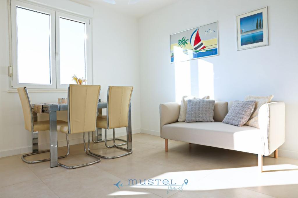 Die Wohnung bietet komfortable Unterkunft für bis zu 4 Personen, befindet sich im zweiten Stock und ist ideal für Familien, Paare oder Freunde. Ausstattung: 2 Schlafzimmer: eines mit einem Doppelbett (160x200 cm), das andere mit einem Doppelbett (180x200 cm), Badezimmer mit Dusche und Waschmaschine, voll ausgestattete Küche, Balkon mit Meerblick – perfekt für den Morgenkaffee oder zum Entspannen am Abend, Wohnzimmer mit Zugang zum Balkon, kostenloser Parkplatz 150 Meter von der Wohnung entfernt.