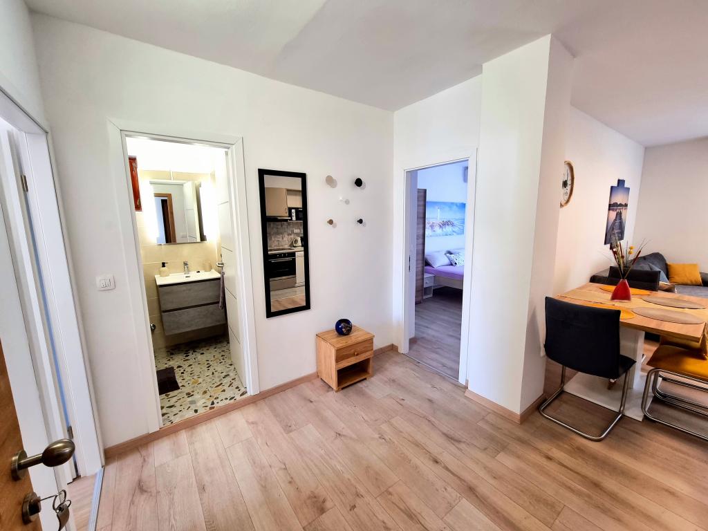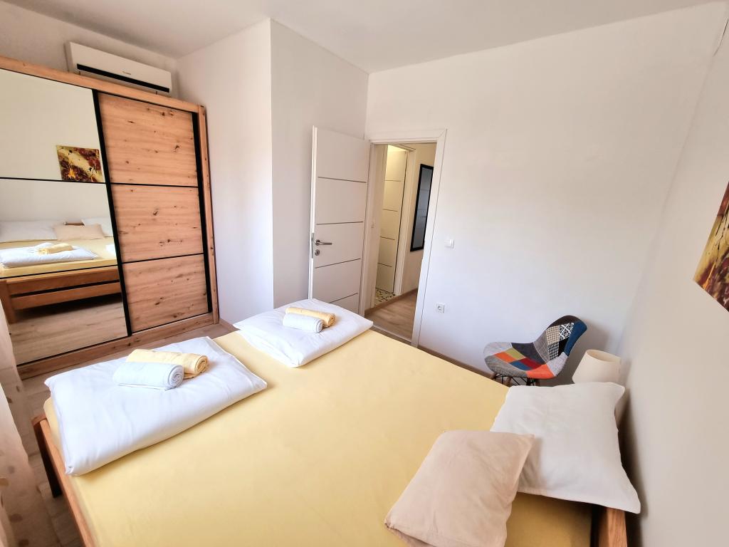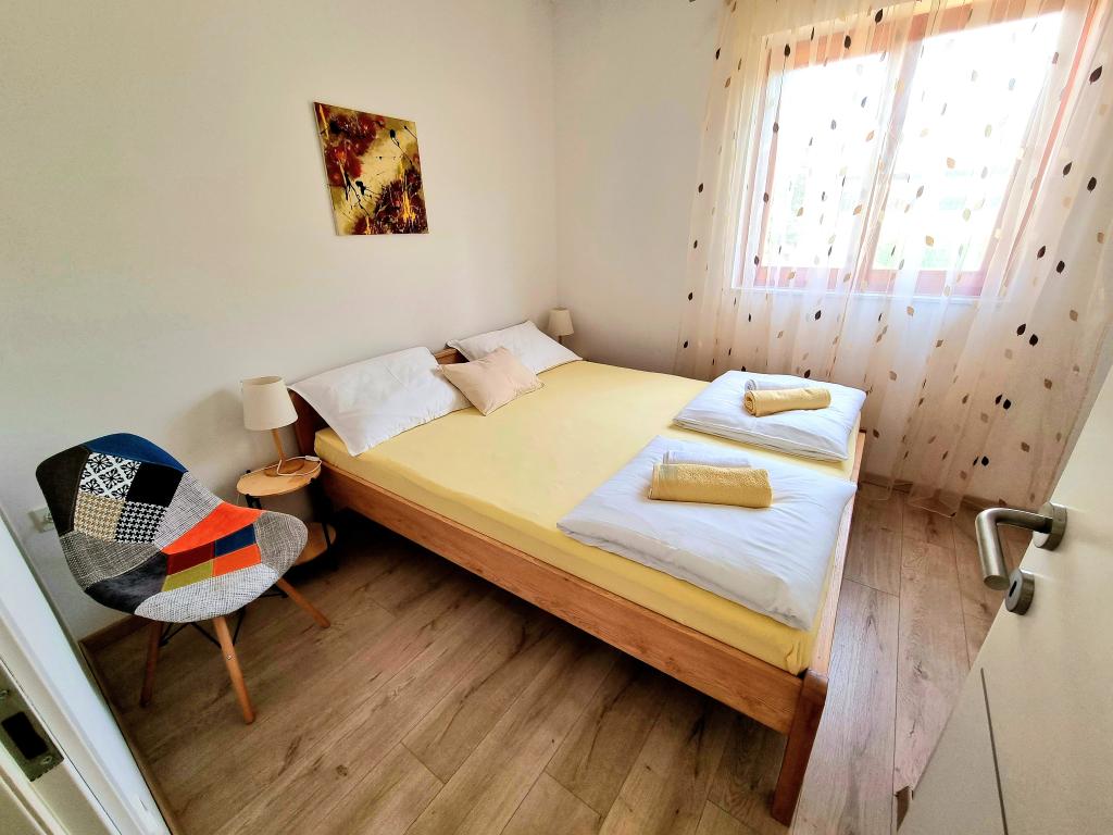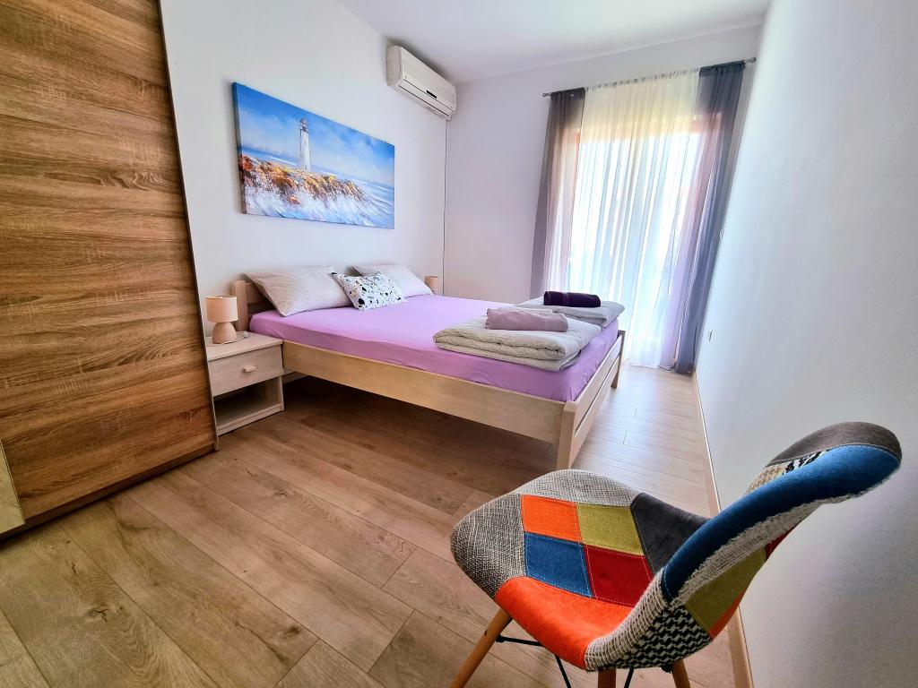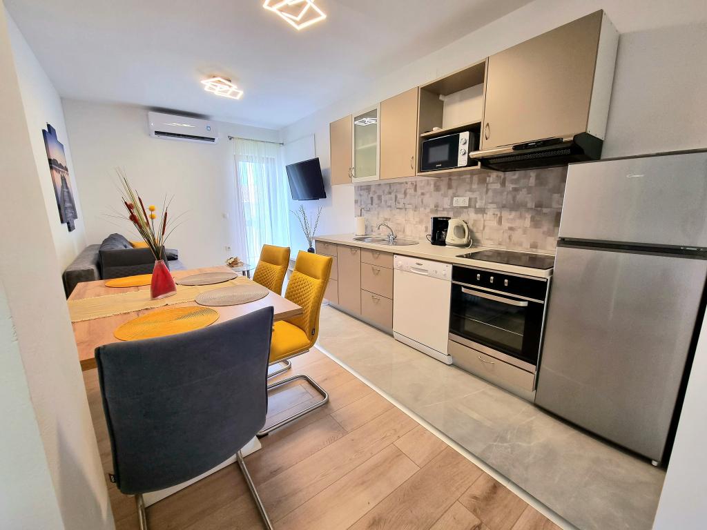 Modernes und komplett ausgestattetes 2-Zimmer-Apartment für 4 Personen in Biograd na Moru. Die Unterkunft befindet sich in einem ruhigen Teil des Zentrums, nur wenige Gehminuten vom Strand Dražice entfernt. Auch die Promenade mit Restaurants und Cafés ist bequem zu erreichen. Ein Parkplatz steht auf dem Grundstück zur Verfügung. Das Apartment verfügt über zwei separate Zimmer mit jeweils eigener Klimaanlage, zwei Badezimmer und eine voll ausgestattete Küche.