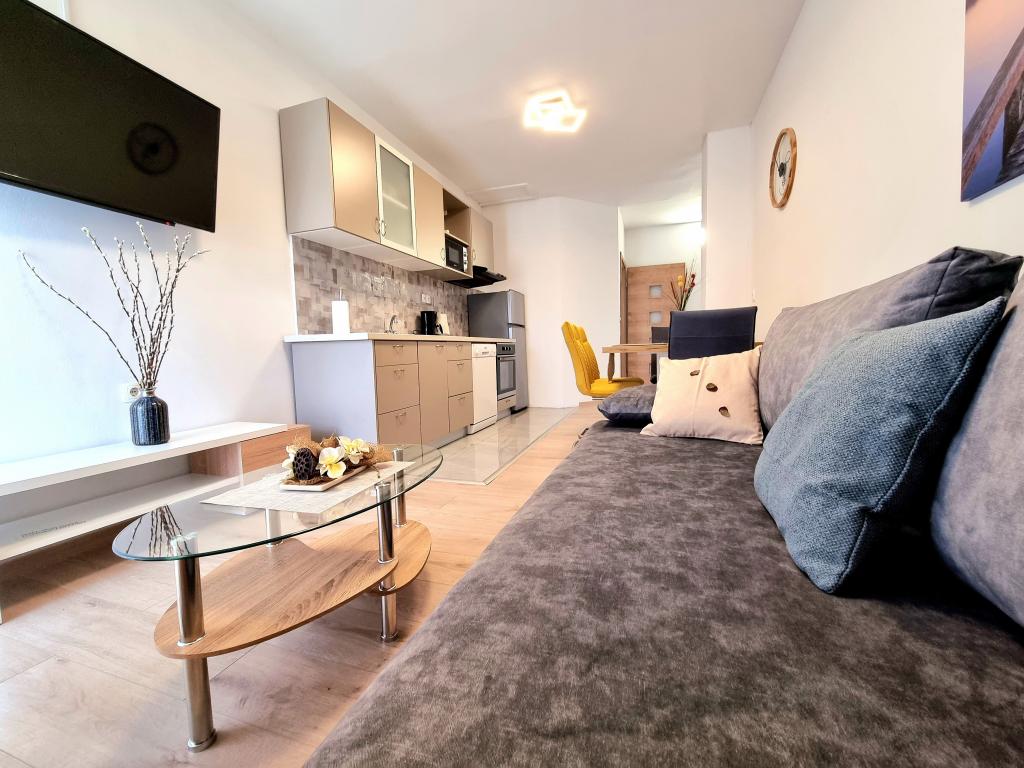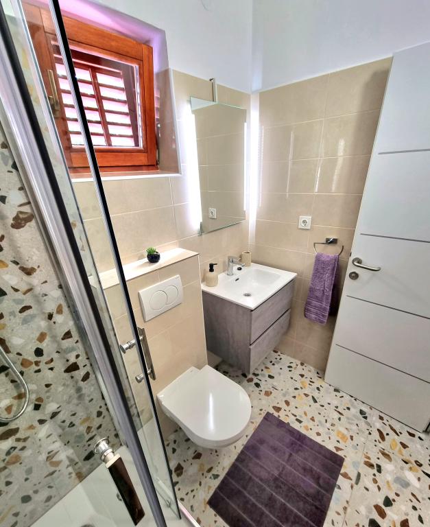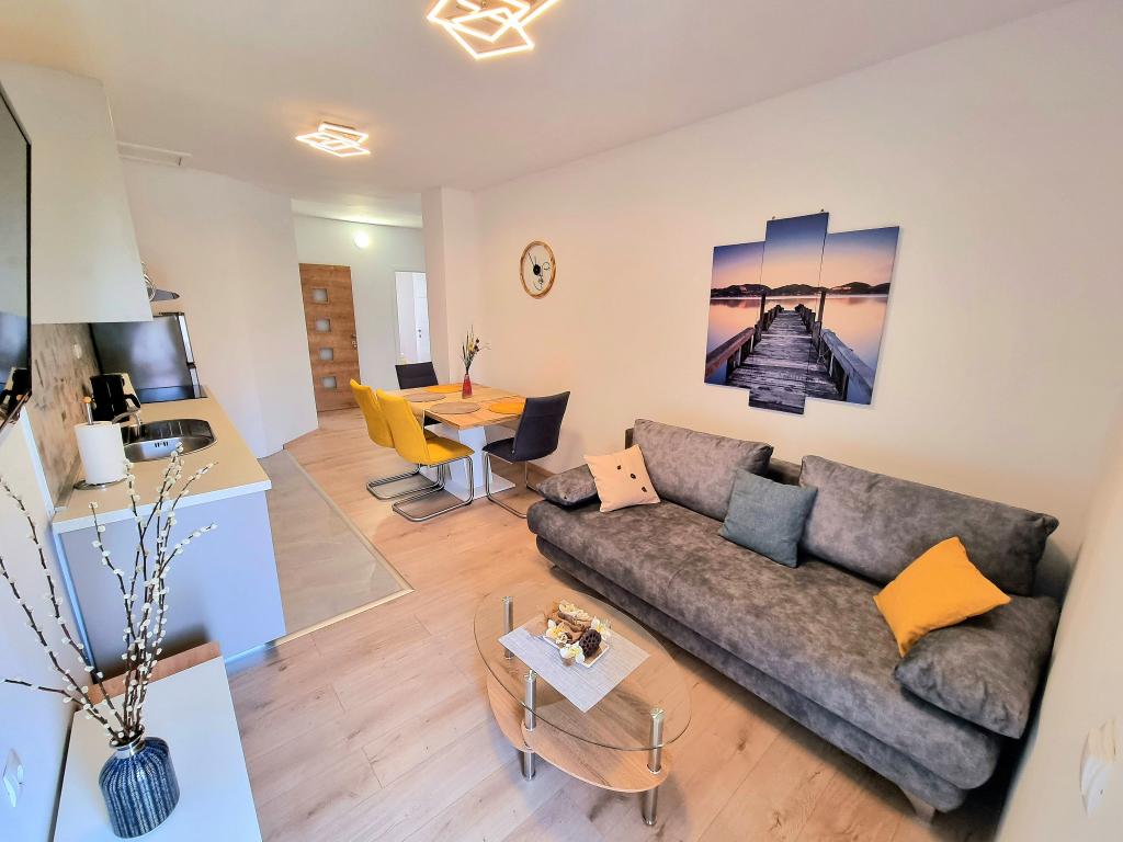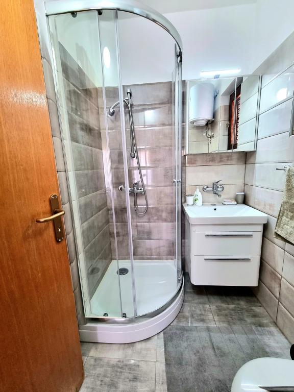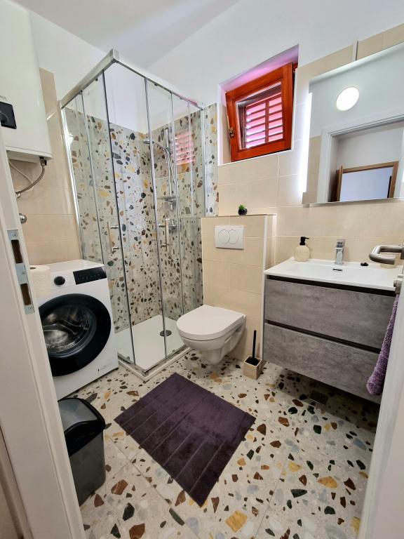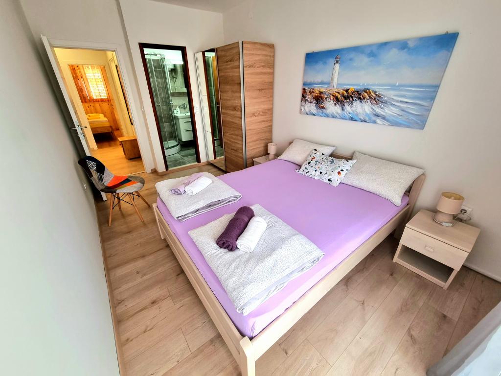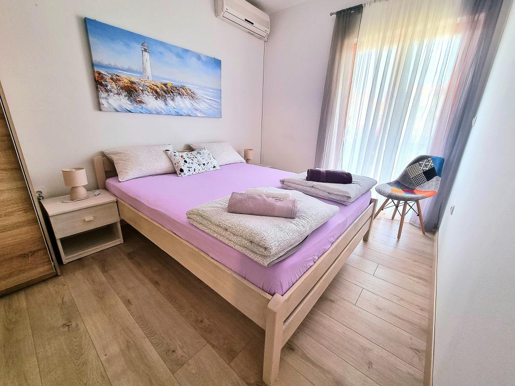 Modernes und komplett ausgestattetes 2-Zimmer-Apartment für 4 Personen in Biograd na Moru. Die Unterkunft befindet sich in einem ruhigen Teil des Zentrums, nur wenige Gehminuten vom Strand Dražice entfernt. Auch die Promenade mit Restaurants und Cafés ist bequem zu erreichen. Ein Parkplatz steht auf dem Grundstück zur Verfügung. Das Apartment verfügt über zwei separate Zimmer mit jeweils eigener Klimaanlage, zwei Badezimmer und eine voll ausgestattete Küche.