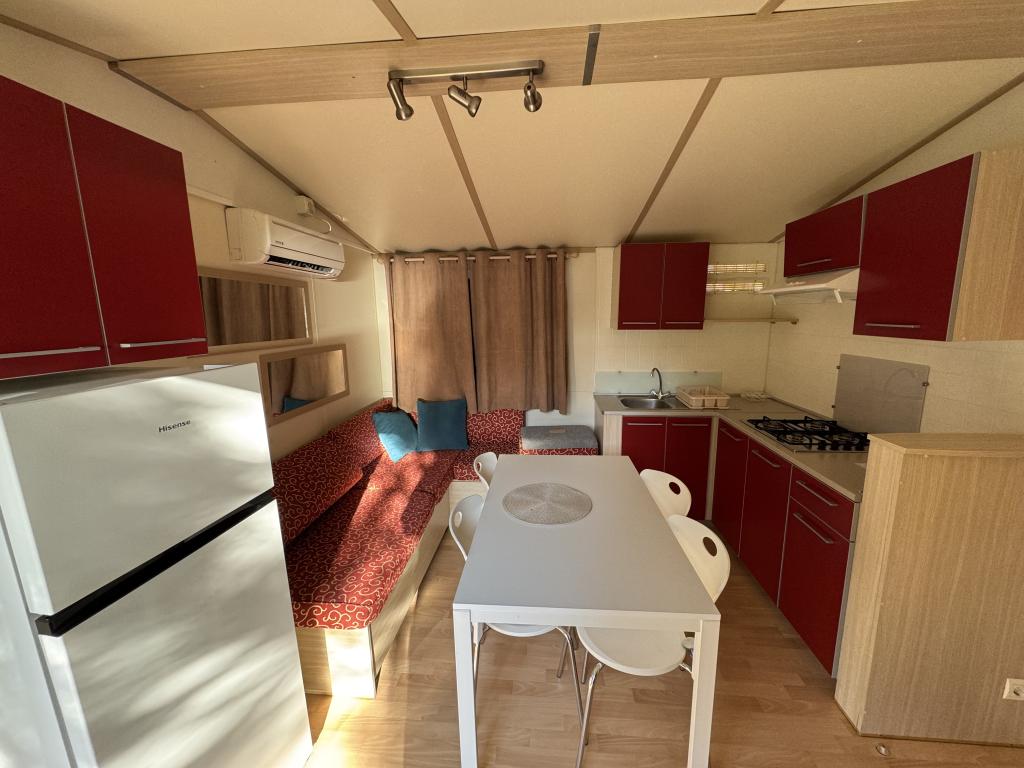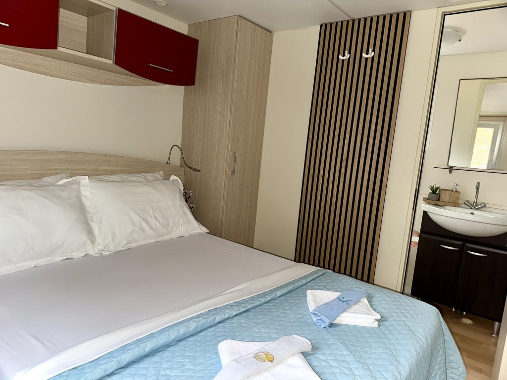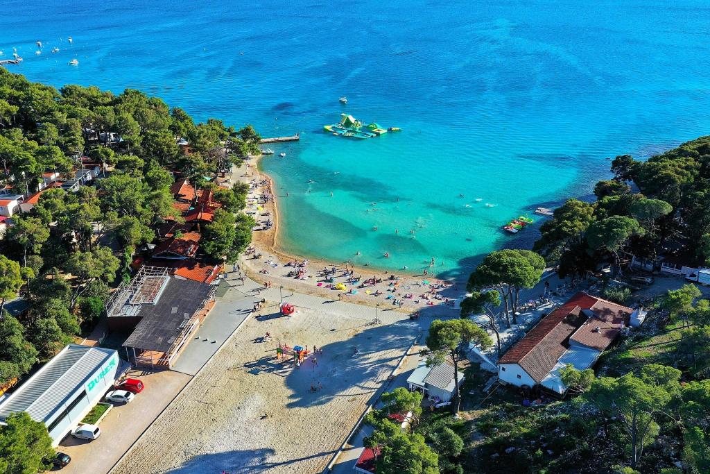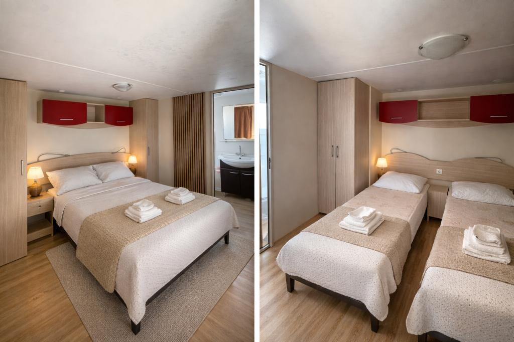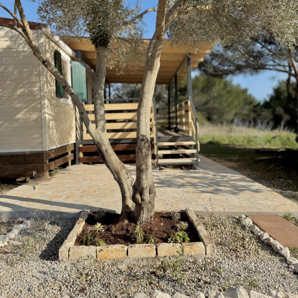 Das Mobilheim Bonaca befindet sich auf dem Campingplatz Bakija, nur 40 m vom Meer entfernt und bietet direkten Strandzugang. Der Strand von Soline ist in 2-3 Minuten zu Fuß erreichbar, der Markt von Studenac in 1 Minute und das Zentrum in 7-8 Minuten. Das Mobilheim ist komplett ausgestattet mit Garten, Küche und einem komfortablen Wohnzimmer. Parkplatz, eigener Grill und Außendusche stehen ebenfalls zur Verfügung. Es bietet Platz für 4 Personen und verfügt über 2 Schlafzimmer und 2 Badezimmer. Die geräumige Terrasse lädt mit Meerblick und wunderschönen Sonnenuntergängen zum Verweilen ein.