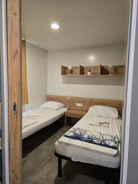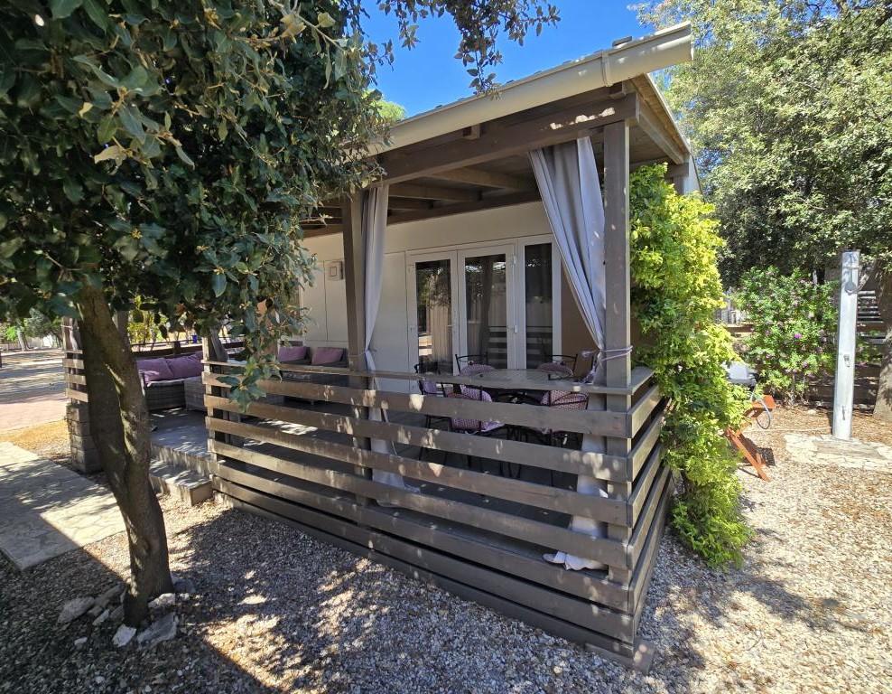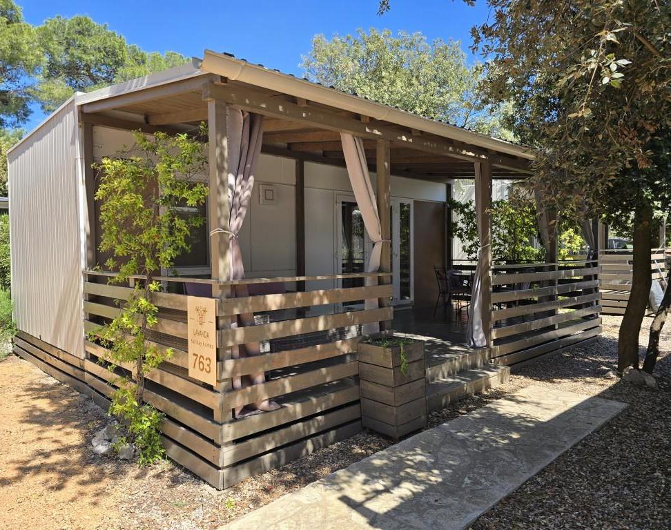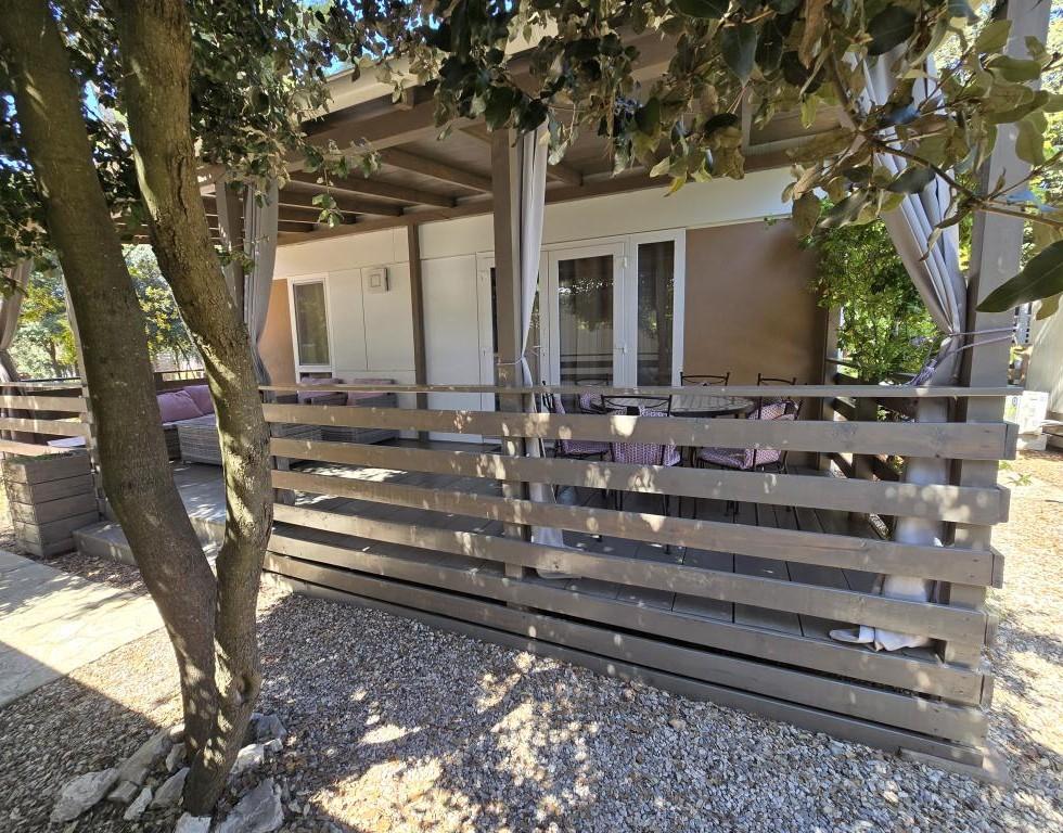 Voll ausgestattetes Mobilheim (30 m²) mit großer Terrasse und Parkplatz. Es befindet sich in einem ruhigeren Teil des Campingplatzes Soline, unweit von Restaurants, Cafés und Strand, aber dennoch zentral gelegen.