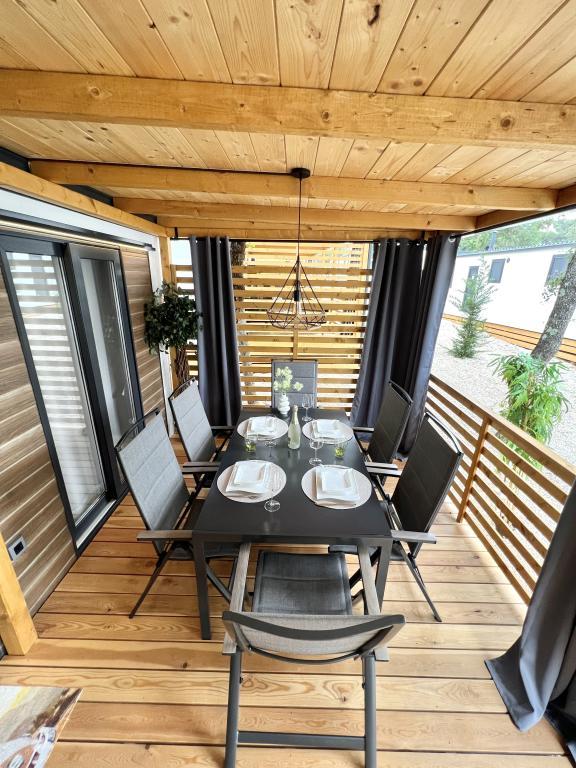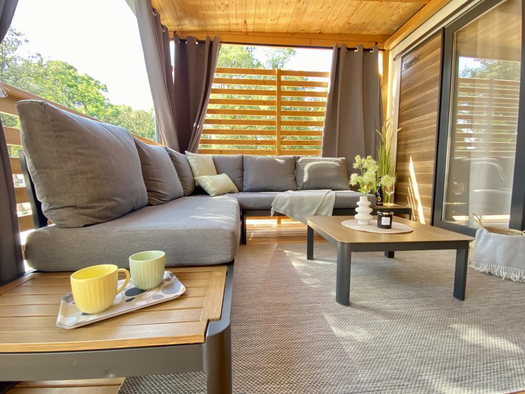 Das Haus umfasst: 2 Schlafzimmer, Küche (mit Wechselrichter), Esszimmer, ein Badezimmer, eine überdachte, voll ausgestattete Terrasse (32 m²), Babybett, Hochstuhl, Föhn, Kaffeemaschine, Wasserkocher, Grill, Toaster, Mikrowelle, Bügeleisen, Handtücher, Bettwäsche, Eierkocher, Küchenmaschine, Staubsauger.