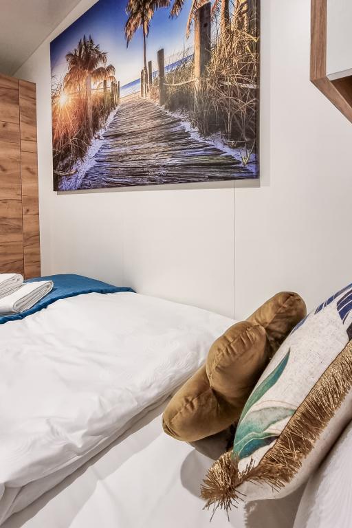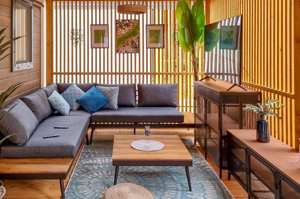 Unser modern ausgestattetes Mobilheim bietet eine komfortable Unterkunft für bis zu 6 Personen und verfügt über 2 geräumige Schlafzimmer, ein Wohnzimmer mit Schlafsofa und 2 Badezimmer. Genießen Sie die große überdachte Terrasse mit Essbereich und Wohnzimmer im Freien – ideal für lange gesellige Abende. Hier können Sie Darts spielen oder vor dem großen Fernseher entspannen, während Sie auf unserem großen Gasgrill und dem Außenofen grillen. Die überdachte Terrasse ist von Pinien umgeben und wird von einer sanften Meeresbrise umweht. Auf der einen Seite der Terrasse befindet sich ein geräumiger Essbereich mit einem bequemen Sofa und noch bequemeren Sesseln, während auf der anderen Seite unser Wohnzimmer im Freien eine gemütliche Sitzecke bietet, in der Sie nicht nur entspannen, sondern auch Ihre Lieblingssendungen auf dem riesigen Fernseher mit verfügbaren Satellitenkanälen, Netflix und HBO GO genießen können. Das Haus liegt 3 Minuten vom wunderschönen Strand entfernt.
