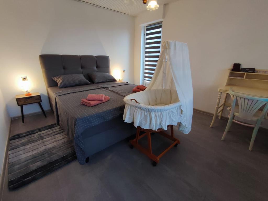 Das Ferienresort Golden Hill mit Apartments Vis befindet sich im Dorf Šandrovac im ruhigen Bilogora. Die Wohnung wurde nach dem höchsten Punkt des Bilogora-Hügels Vis benannt, der sich auf dem Grundstück selbst befindet. Der Ort strahlt Ruhe und Frieden aus und ist ideal für Erholung und Regeneration. Die Unterkunft selbst bietet eine wunderschöne Landschaft mit Blick auf Papuk. Die Wohnung ist komplett eingerichtet und modern ausgestattet. Die Gäste haben absolute Privatsphäre und können das gesamte Anwesen nutzen, das enthält; Garten 1700 m2, Obstgarten, Bio-Gemüsegarten, Kinderspielplatz mit Haus in der Baumkrone, Grill und viele andere Sportgeräte. Ein idealer Ort für Naturliebhaber, da er von wunderschönen Eichen- und Buchenwäldern umgeben ist.