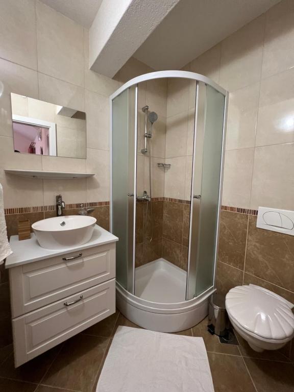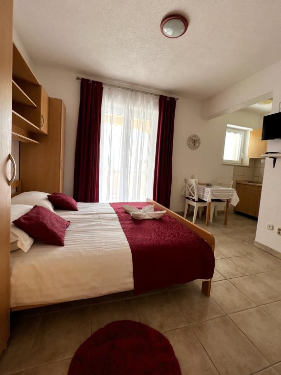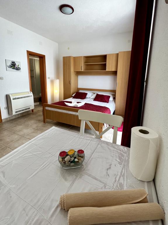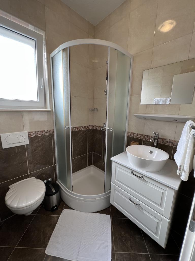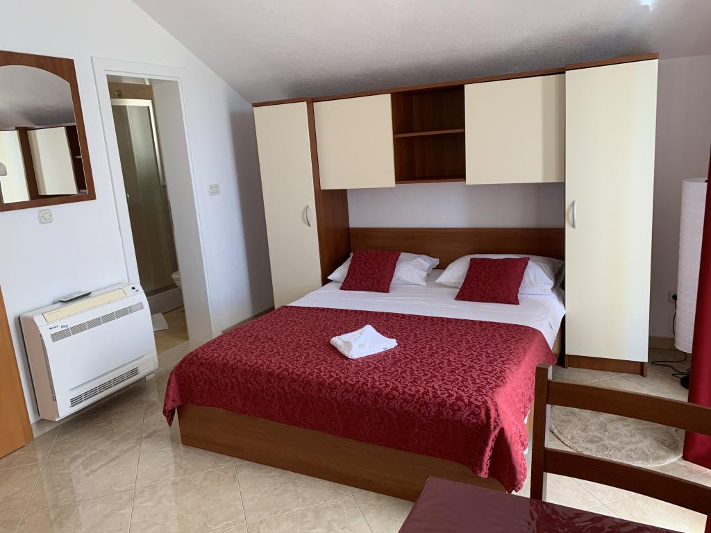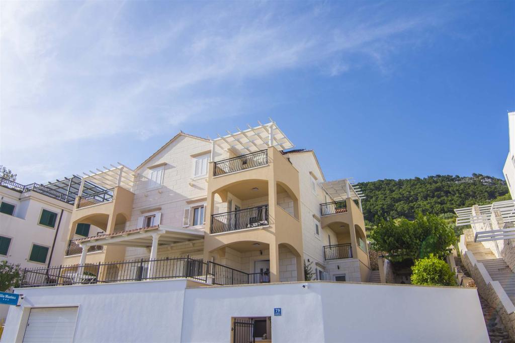 Die Villa Marina liegt in einem ruhigeren Teil von Bol auf der Insel Brač, nur wenige Gehminuten vom Stadtzentrum und dem Meer entfernt. Die Unterkunft bietet mehrere Apartments, die alle gepflegt, funktional und für einen angenehmen Sommeraufenthalt bestens ausgestattet sind. Jedes Apartment verfügt über eine eigene Küche, ein Badezimmer, Klimaanlage und einen Balkon oder eine Terrasse. Die meisten bieten Meer- oder Stadtblick. Gästen stehen private Parkplätze auf dem Gelände zur Verfügung. Das Zentrum von Bol, Restaurants, Geschäfte und die Uferpromenade sind bequem zu Fuß erreichbar, und der berühmte Strand Zlatni rat ist in etwa 15–20 Minuten zu Fuß oder wenigen Fahrminuten zu erreichen. Die Unterkunft eignet sich ideal für Paare, Familien und kleine Gruppen, die eine einfache und komfortable Unterkunft in der Nähe aller Annehmlichkeiten, aber dennoch ruhig, suchen.