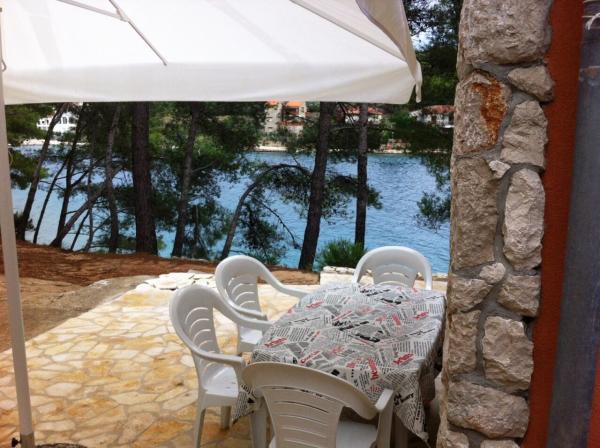 Komplett eingerichtete Wohnung in einer ruhigen Bucht, Kiefernwald, 7 Meter vom Meer entfernt, der Strand direkt vor den Wohnungen, ein großer Stein Terrasse und Grill. Die Anlage befindet sich 2 Minuten zu Fuß entfernt von den Geschäften, Postämtern und Restaurants