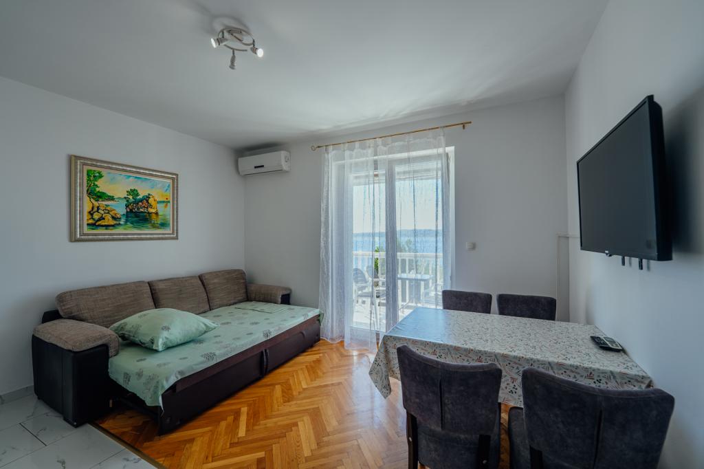 Wir waren zu fünft in A5+1. Die Wohnung ist sehr sauber und schön eingerichtet. Alles was Sie brauchen ist da. Auch die Möbel im Schlafzimmer sind neu und das große Bett ist sehr bequem. Auch 2 Klimaanlagen in der Wohnung sind von Vorteil, so dass die gesamte Wohnung angenehm gekühlt wird. Sehr schöne Terrasse mit Meerblick und bequemen Möbeln. Nach ca. 3 Gehminuten ist das Meer ganz in der Nähe. Brela liegt auf einem Berg, ein wunderschöner Ort, aber dafür muss man viele Treppen steigen. Die Gastgeber sind sehr nette und hilfsbereite Menschen. Ivana und Milan, vielen Dank für alles, was Sie für uns getan haben.