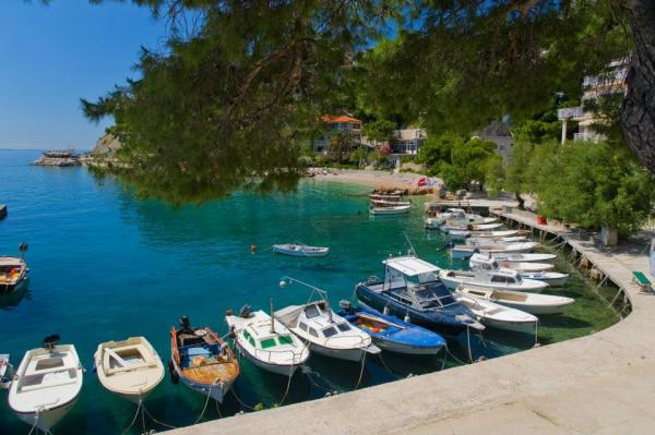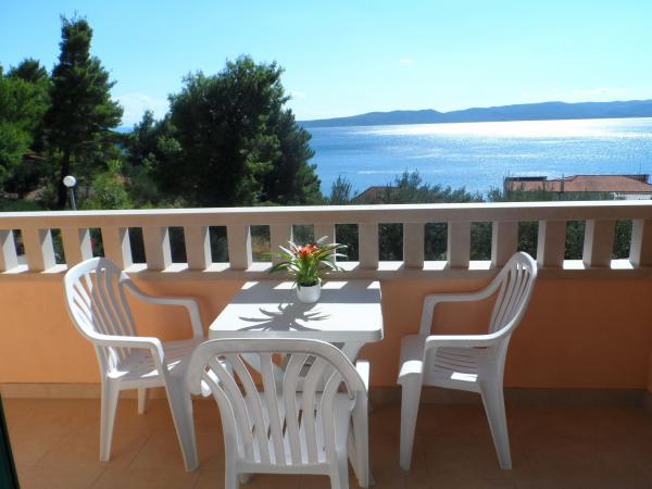 Apartments Vale kleines Haus für einen angenehmen Urlaub. Umgeben von Pinien und Olivenbäumen befindet sich in Brela, in Stomarica Bucht, umgeben. Vollständig möbliert und funktionellen Apartments sind 1 Minuten zu Fuß zum Strand, in der Nähe der Strandbars, wo Sie Erfrischung finden. Beide Wohnungen verfügen über einen eigenen Eingang, Balkon mit Meerblick und Parkplatz.