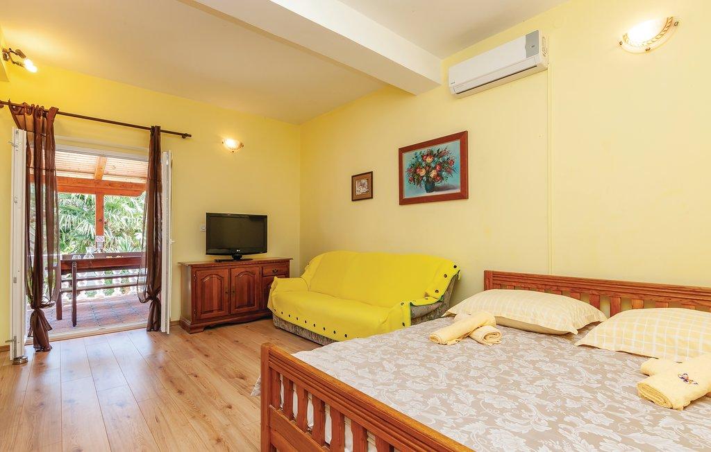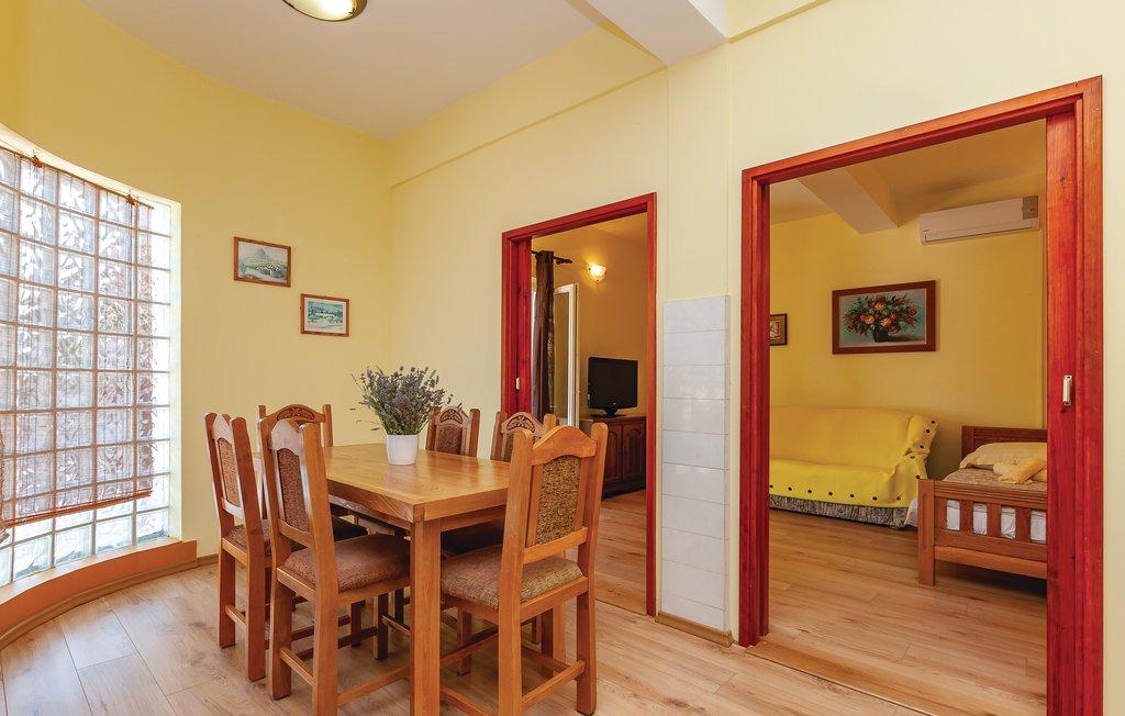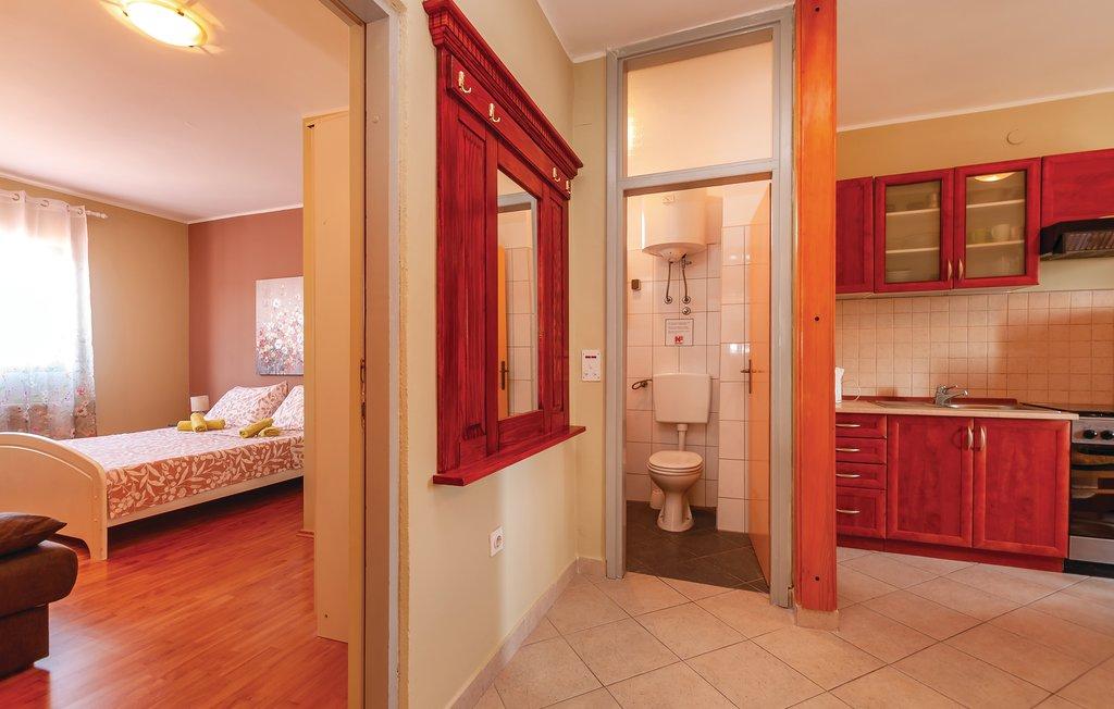 Die Anlage ist vom Strand entfernt in einer ruhigen mjestuudaljenom von prometnicei Lärm 5 Minuten zu Fuß entfernt. Jede Wohnung verfügt über Gartenmöbel auf der Terrasse oder einen Balkon, und es gibt zwei Grills, offene, die Gäste können auch verwendet werden. . Der Innenhof ist im mediterranen Stil mit Rasenflächen, Palmen und andere Pflanzen schön eingerichtet.