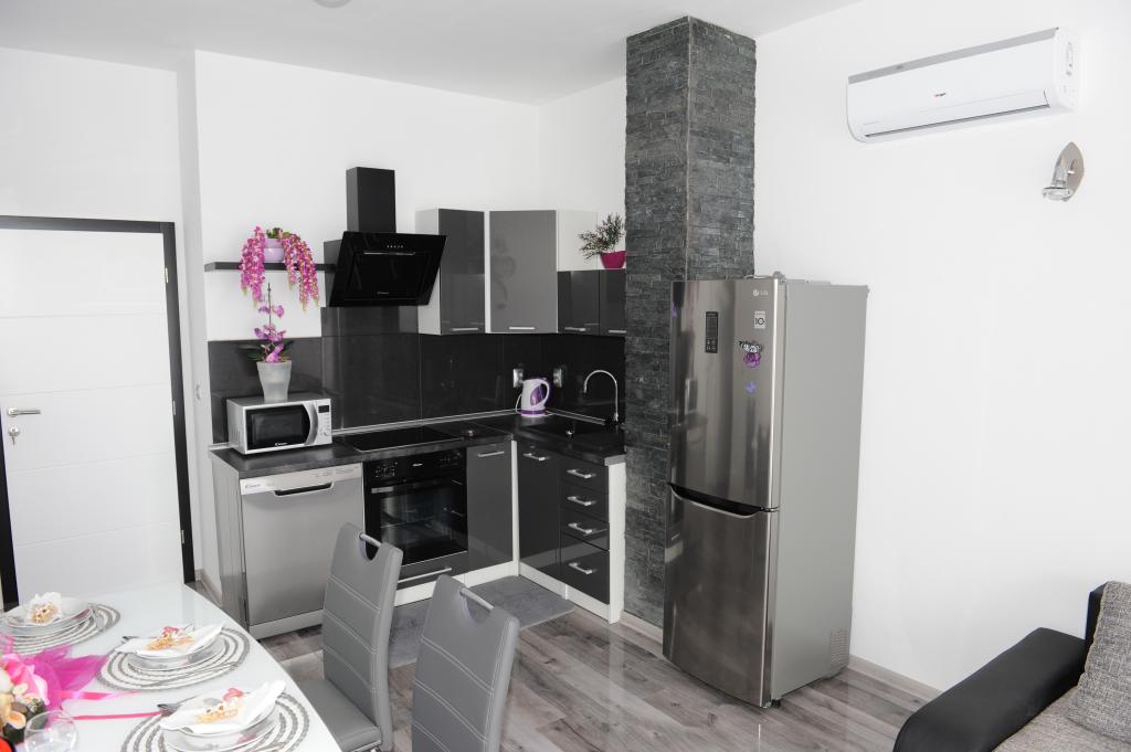 Komplett und modern ausgestattete Apartments in Brodarica, ca. 3 km vom Zentrum von Sibenik entfernt. Das Studio-Apartment wurde 2017 in Betrieb genommen, die Ein-Zimmer- und Zwei-Zimmer-Apartments wurden 2019 in Betrieb genommen. Gradska Šibenska plaža Der Holzschnitt ist ca. 30 m vom Apartment entfernt, ein 20 m langer Block entfernt befindet sich ein Geschäft, mehrere Strandbars, Fast Food, Konditorei, Bäckereien, Basketball- und Volleyballplätze, Kinderspielplätze, Trainingsgeräte. Innerhalb von 3 Meilen gibt es ein Einkaufszentrum Dalmare, Kaufland, Plodine, Lidl, Mc Donalds. .