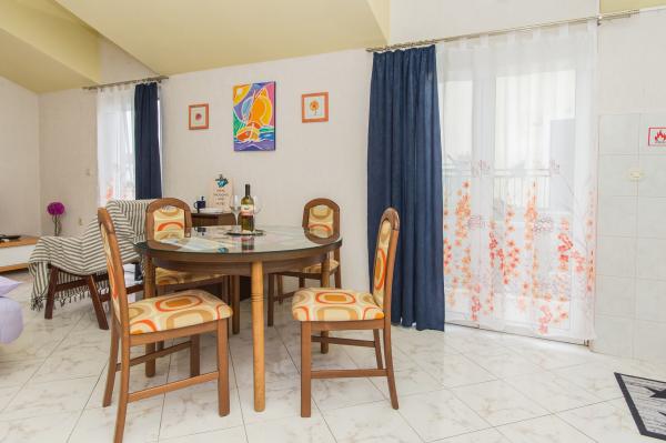 Eine gepflegte, geräumige Wohnung ist nur einen kurzen Spaziergang vom Strand entfernt, Bäckereien, Restaurants, Geschäfte ... Parken ist frei im Hof, im Schatten, am Eingang separat, die Wohnung hat einen eigenen Balkon, separates Schlafzimmer, Küche mit Geschirr, Im Wohnbereich befindet sich ein breites Bett für zwei Personen, Balkon ... Klimaanlage, Sat-TV, unbegrenzter Internetzugang sind kostenlos. . Bettwäsche und Handtücher sind vorhanden in der Wohnung. Kommen Sie und genießen Sie Ihren Urlaub bei uns .... . . .