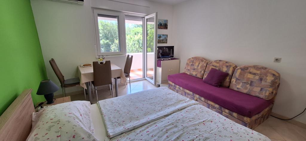Im ersten Stock des Wohnblocks befindet sich ein Balkon mit Blick in den Wald und ins Grüne. Ruhig und angenehm zu schlafen. In der Nähe befinden sich ein Tennisplatz, ein Basketballplatz, Radwege, Promenaden und der schönste und größte Olivenhain Kroatiens. Ein beliebtes Familienresort auch für Naturliebhaber. Naturstrände, Yachthafen, Grill, Restaurants, Geschäfte, Bäckerei, Konditorei und Post sind in unmittelbarer Nähe der Wohnung vorhanden.