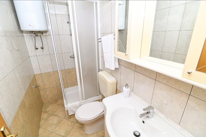Wohnhaus mit fünf Wohnungen von einem ruhigen Umfeld umgeben. Der nächste Strand ist nur 5 Minuten zu Fuß vom Zentrum und sollte auch nur 5 Minuten. Neben dem Haus gibt es zwei Restaurants und Autoservice. Das Haus verfügt über sieben Parkplätze.