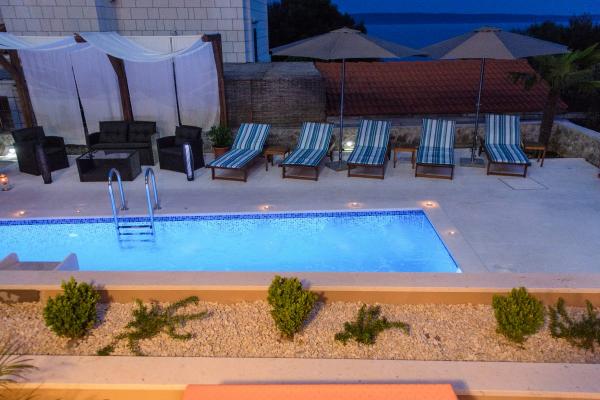 Villa Aurora ist ein schönes neues Gebäude in bester Lage errichtet 2014-2015 Jahre, voll klimatisiert und luxuriös eingerichtet. Es befindet sich auf der Insel Ciovo in einem kleinen und ruhigen Stadt Trogir. Es ist das attraktive touristische Destination in Trogir Riviera. Villa Aurora befindet sich nur 25 m vom kristallklaren Wasser und den schönen Stränden entfernt. Die Stadt Trogir, die auf der UNESCO-Beschreibung der Denkmäler des Weltkulturerbes ist, ist nur 5 km entfernt und der Flughafen nur 8 km. Villa Aurora verfügt über 4 luxuriöse Suiten, einen Außenpool, alle mit Balkon und Terrassen bieten einen atemberaubenden Blick auf den schönen Blick aufs Meer und die umliegenden Inseln.