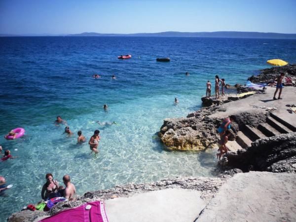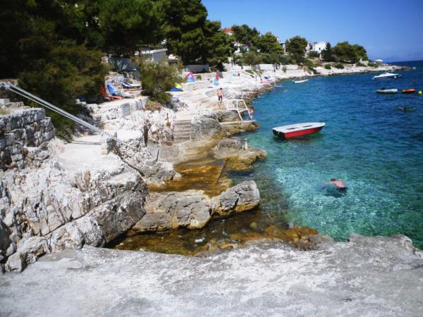 Die Wohnungen befinden sich in einem Familienhaus nur 15 m vom Strand entfernt in der ruhigen Stadt Trogir auf der Halbinsel Ciovo nur 5 km von Trogir und 10 km vom Flughafen Split entfernt. Das Anwesen verfügt über 2 klimatisierte Apartments mit einem attraktiven Blick auf das Meer mit eigenem Balkon, kostenlose Parkplätze und separate Eingänge. Ausgezeichnete Lage - zweite Reihe zum Meer auf der Südseite der Insel Ciovo ist von wunderschönen Stränden und kristallklarem Meer beleuchtet von sogar 2570 Stunden Sonnenschein pro Jahr umgeben. Die Apartments bieten auch zusätzlich zur kostenlosen Nutzung der Wohnung Wi-Fi Internet, Klimaanlage und die Nutzung von Außendusche und Außenkamin ausgehandelt.