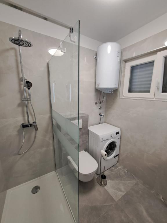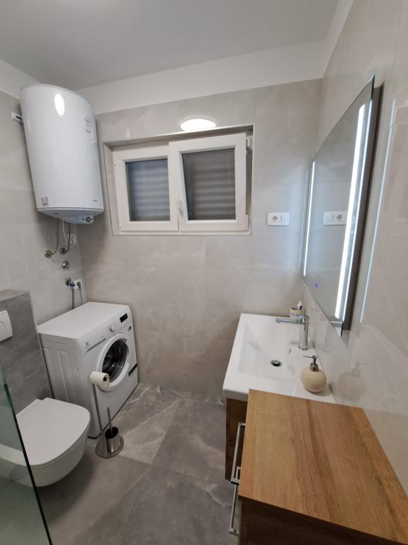 Apartment mit riesiger Terrasse, Meerblick und Außendusche. Voll ausgestattet und komfortabel. Ruhige Nachbarschaft und sehr nah am Strand. Die Besitzer waren sehr hilfsbereit, nett und höflich. Wir wurden mit kroatischem Wein und wunderbarem hausgemachtem Olivenöl begrüßt. Vielen Dank für Ihre wundervolle Gastfreundschaft.