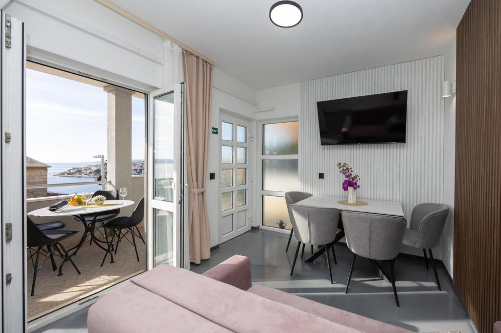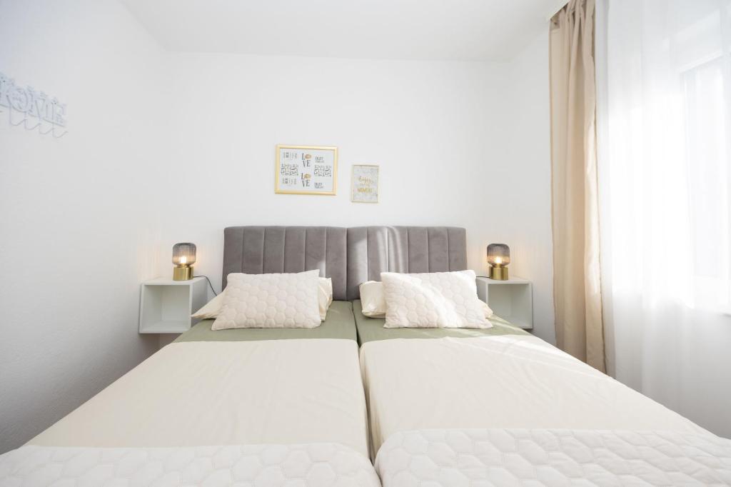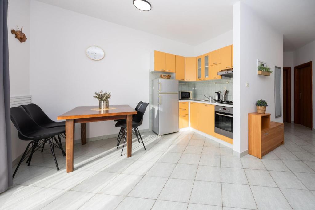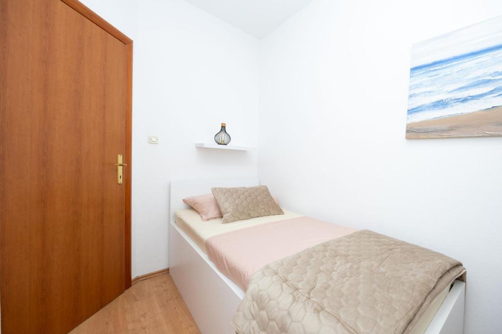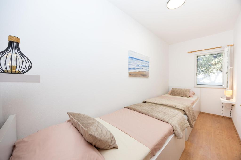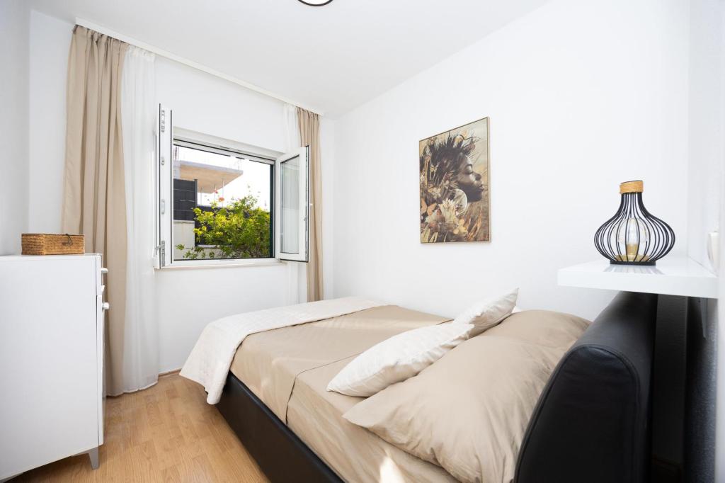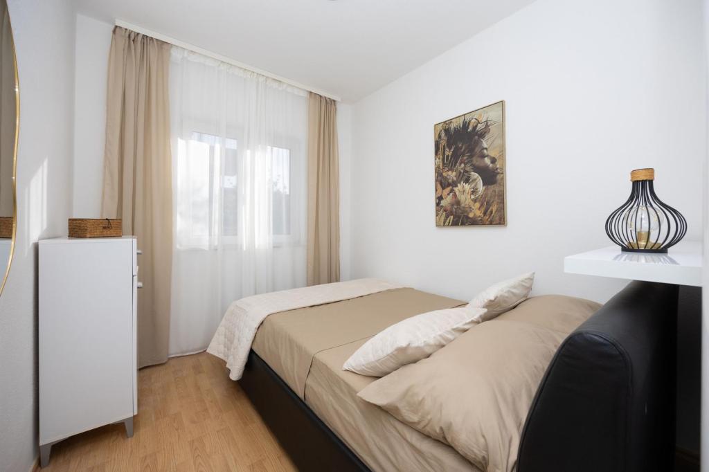 Apartments Nela mit einer komfortablen Unterkunft ausgestattet, auf der Südseite der Halbinsel Ciovo gelegen. Genauer gesagt, in der Bucht Movarštica. Der Blick erstreckt sich auf den Inseln von Solta und Drvenik. In der Nähe liegt die wunderschöne historische Stadt Trogir, die mit ihrer Architektur und Unterhaltung erfreut. Nähe befindet sich der Flughafen von Split (6 km), die Stadt von Kastela (6km), Split (33 km). . Verbringen Sie Ihren Urlaub in einem ruhigen Ort, entspannen und genießen die idyllische Meer, Bokun gutes Essen und ein Glas Wein und Wasser. Apartments Nela sind die ideale Wahl für Sie. Familie Rajcic Sie nestrepljivo erwartet!