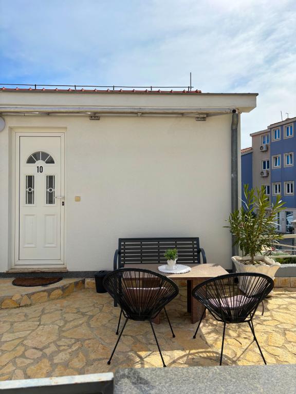 Schöne Apartments auf Ciovo mit wunderschönem Meerblick Unser Haus auf der Insel Ciovo liegt nur 2 Gehminuten vom Strand entfernt und bietet einen unglaublichen Blick auf die Adria. In einer ruhigen Umgebung gelegen, ist es perfekt für alle, die bei Sonne, Meer und Privatsphäre entspannen möchten. Das Gebäude besteht aus 11 Wohnungen – 5 größeren und 5 kleineren und einer besonderen Wohnung mit privatem Pool. Jedes Apartment verfügt über eine eigene Terrasse, auf der Sie wunderschöne Sonnenuntergänge und frische Meeresluft genießen können. Die Apartments sind modern und komplett ausgestattet, mit Küche, Klimaanlage, kostenlosem WLAN und allen notwendigen Annehmlichkeiten für einen angenehmen Aufenthalt. Direkt vor dem Haus befindet sich ein Parkplatz, sodass Sie Ihr Auto unbesorgt abstellen können. Es ist ideal für Familien, Paare oder alle, die am Meer entspannen, aber auch die Schönheiten von Čiovo und der Umgebung erkunden möchten. Neben dem Strandvergnügen bietet Čiovo auch viele Aktivitäten wie Radfahren, Wandern und Wassersport. Ebenfalls in der Nähe liegt Trogir, eine Stadt unter dem Schutz der UNESCO.