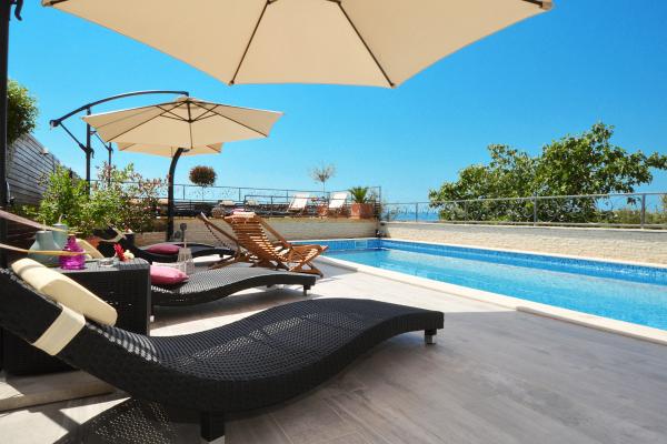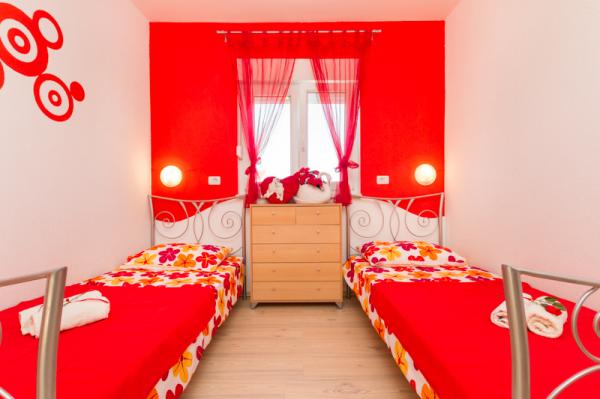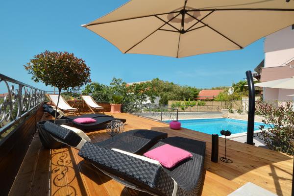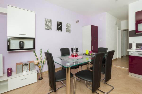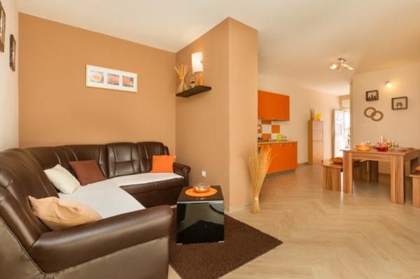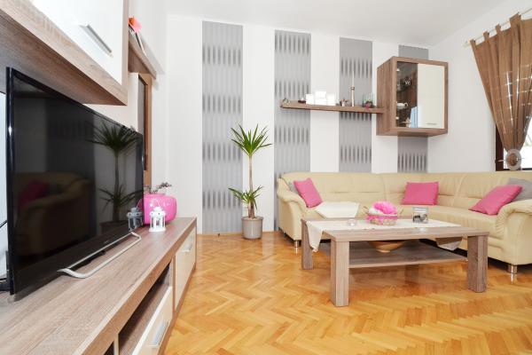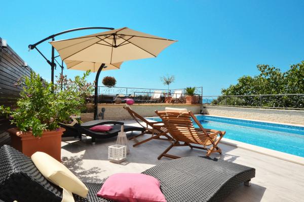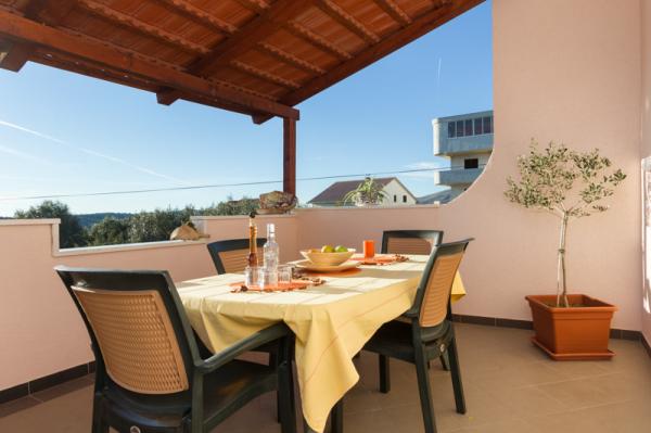 Die Apartments Tomy befinden sich in Okrug Gornji auf der Insel Ciovo (durch das Festland verbunden), nur 550 m vom Meer und 200 m vom Stadtzentrum entfernt. Die Gäste haben zwei Drei-Zimmer-Apartments und ein Apartment mit zwei Schlafzimmern. Vor dem Haus befindet sich ein 35m2 großer Hydromassage-Pool mit Liegestühlen, Schaukeln, Tisch und Stühlen und einem Grill.