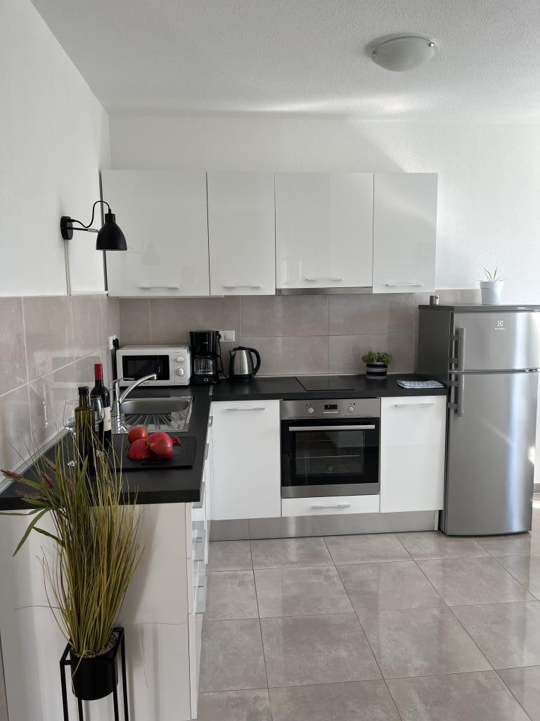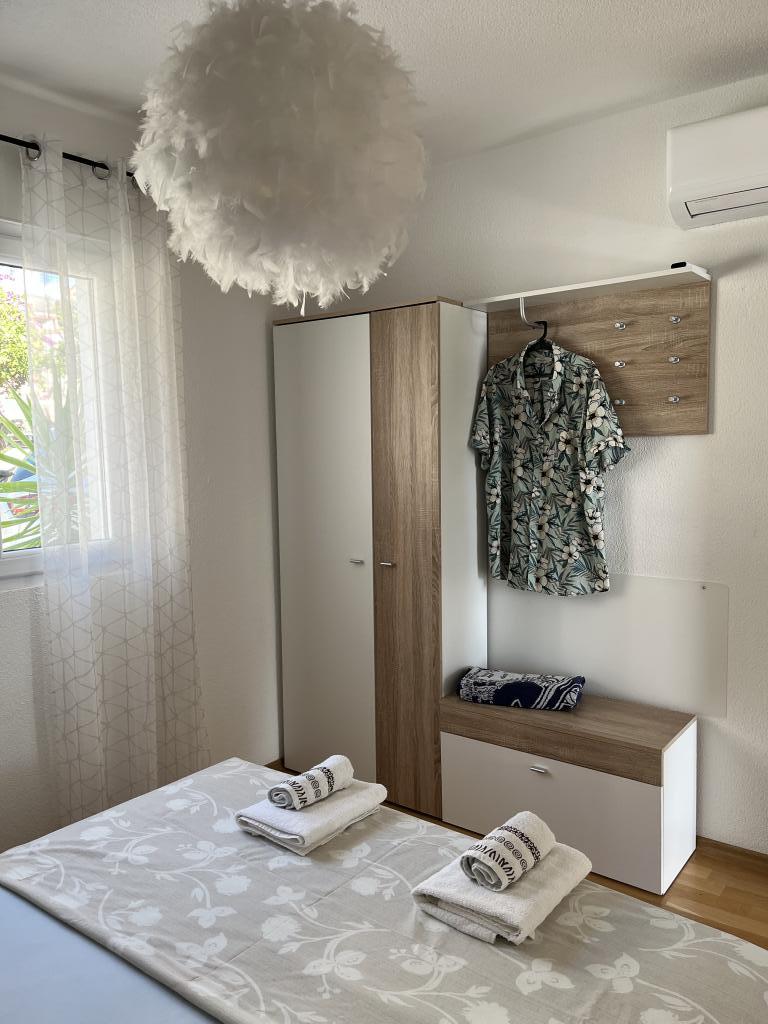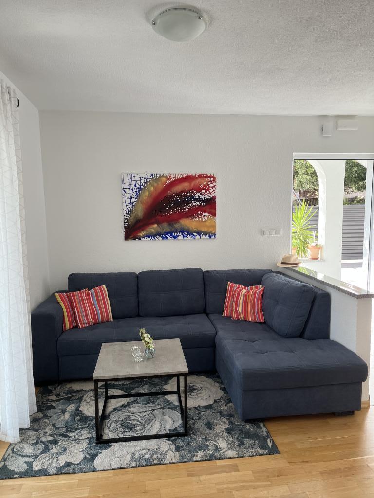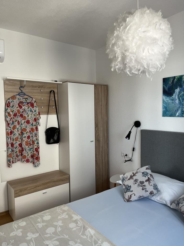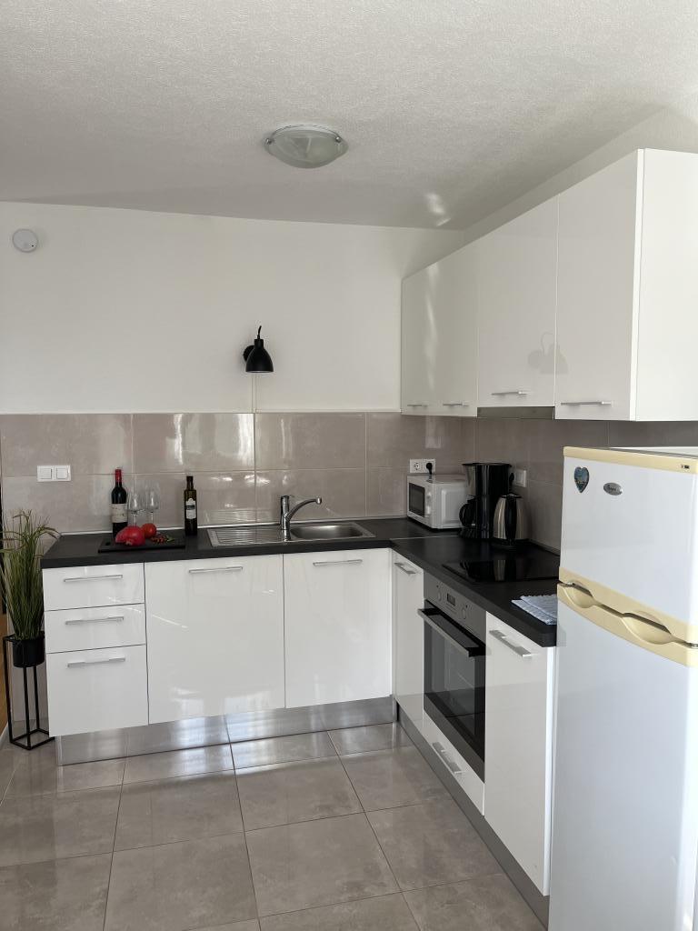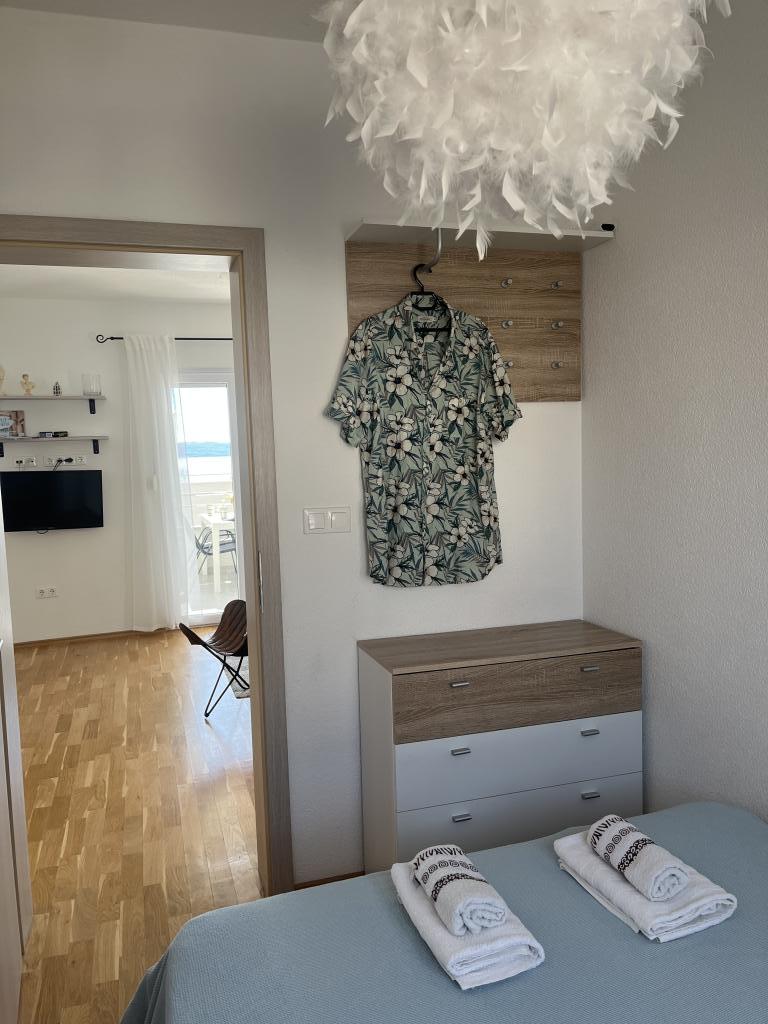 Wir haben die oberste Wohnung gemietet und könnten nicht zufriedener sein. Der Raum ist sauber und es gibt alles, was Sie brauchen. Die Aussicht von der Terrasse ist atemberaubend!!! Es gibt einen Esstisch und eine Lounge. Ein sehr bequemes Bett, eine Spülmaschine, eine schöne große Dusche und eine Waschmaschine machen Ihren Urlaub einfach. Der Pool macht es sehr angenehm, und in diesem Gartenbereich gibt es auch eine Dusche, damit Sie duschen können, bevor Sie in den Pool gehen. 60 Meter vom Haus entfernt erwartet Sie das Meer, herrlich!!! In der Nähe gibt es einen Minimarkt sowie mehrere Cafés und nette Restaurants. Machen Sie sich selbst den Gefallen und mieten Sie diesen wirklich schönen Ort für einen sehr, sehr schönen Urlaub. Darko und Niclas sind die besten Gastgeber, die man sich wünschen kann. Sie sind aufmerksam, freundlich und immer für Sie da, um Ihnen gute Tipps zu geben, was Sie in Kroatien tun und lassen sollten.