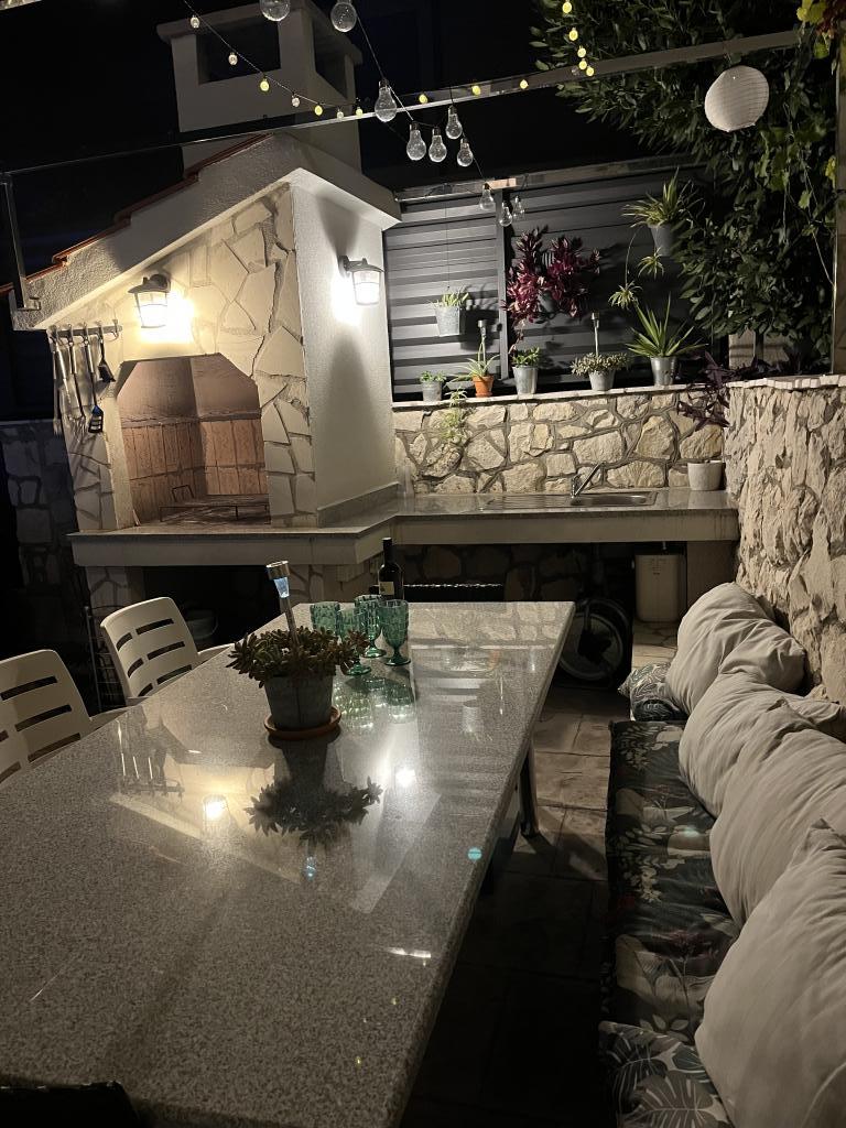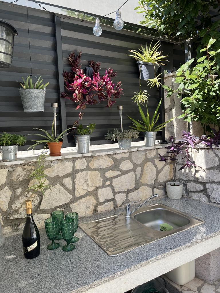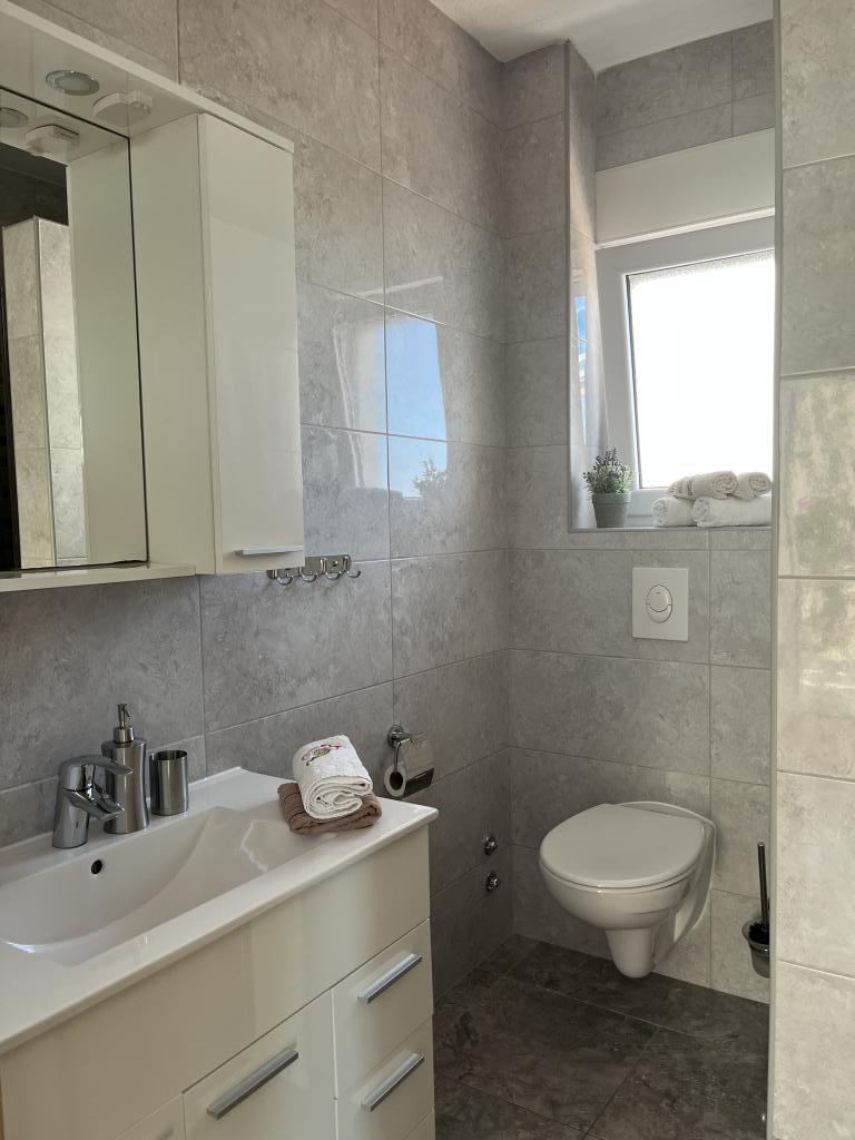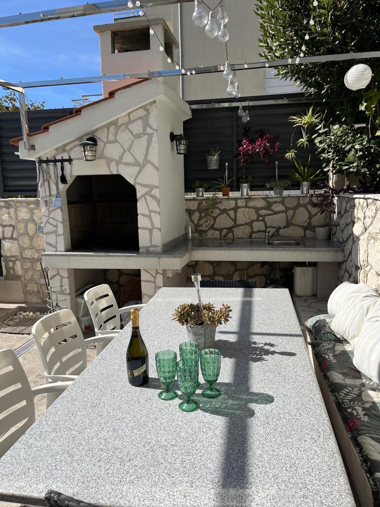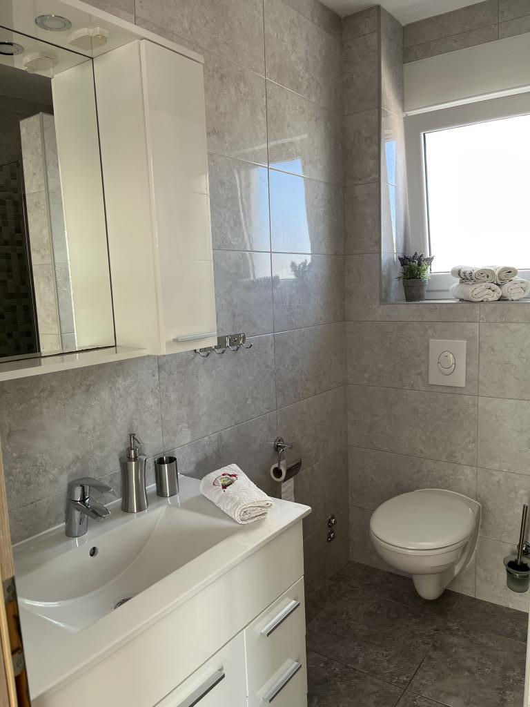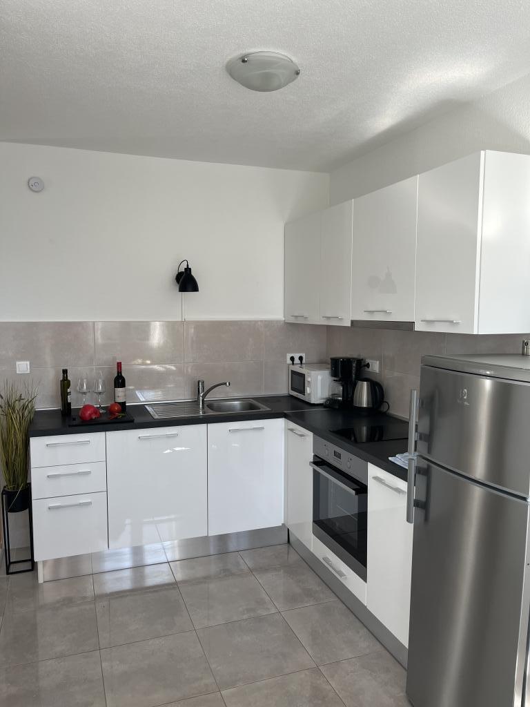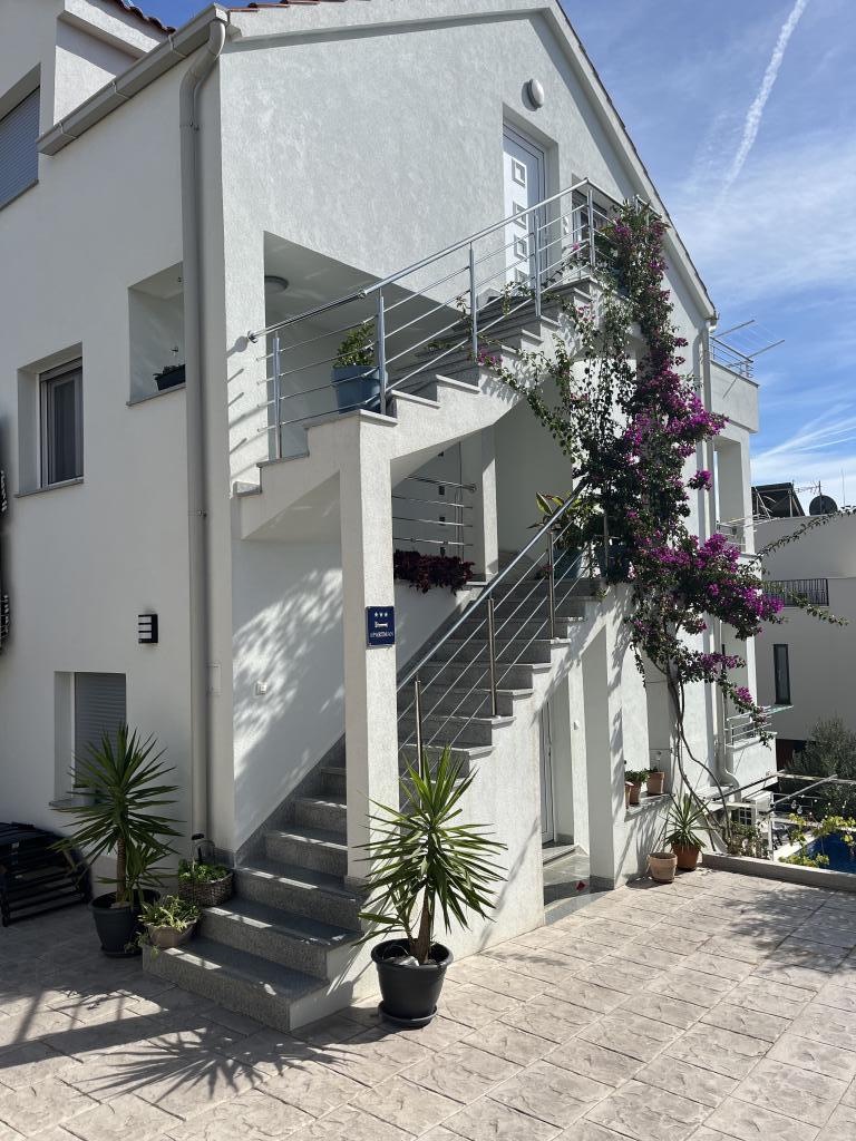 Wir haben die oberste Wohnung gemietet und könnten nicht zufriedener sein. Der Raum ist sauber und es gibt alles, was Sie brauchen. Die Aussicht von der Terrasse ist atemberaubend!!! Es gibt einen Esstisch und eine Lounge. Ein sehr bequemes Bett, eine Spülmaschine, eine schöne große Dusche und eine Waschmaschine machen Ihren Urlaub einfach. Der Pool macht es sehr angenehm, und in diesem Gartenbereich gibt es auch eine Dusche, damit Sie duschen können, bevor Sie in den Pool gehen. 60 Meter vom Haus entfernt erwartet Sie das Meer, herrlich!!! In der Nähe gibt es einen Minimarkt sowie mehrere Cafés und nette Restaurants. Machen Sie sich selbst den Gefallen und mieten Sie diesen wirklich schönen Ort für einen sehr, sehr schönen Urlaub. Darko und Niclas sind die besten Gastgeber, die man sich wünschen kann. Sie sind aufmerksam, freundlich und immer für Sie da, um Ihnen gute Tipps zu geben, was Sie in Kroatien tun und lassen sollten.