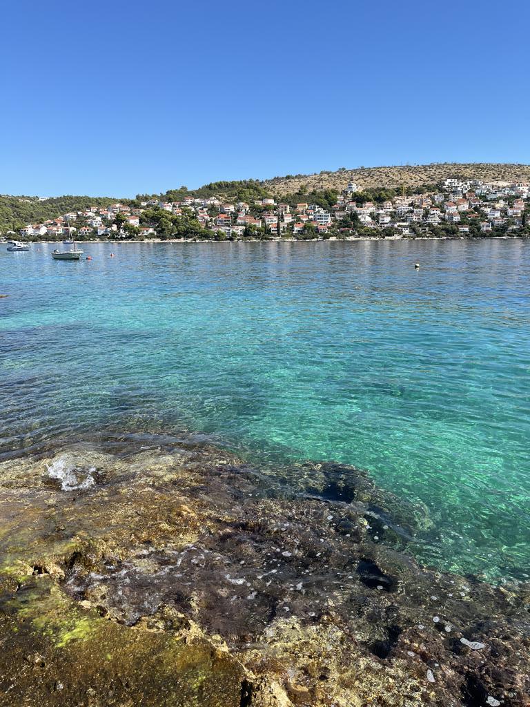 Morgenspaziergänge entlang eines Meeres, das so blau ist, dass es wehtut, Frühstück auf dem Balkon mit einer zauberhaften Aussicht, modernes frisches Licht mit einer schönen Terrasse am Pool, wo wir mehrere Abendessen hatten. Salzbäder direkt unter dem Haus aus kleinen Saunen/Felsen. Schöner Kieselstrand ca. 250 m vom Haus entfernt, perfekt für kleinere Kinder, kleiner süßer Lebensmittelladen um die Ecke. Keine Paxa-Liegen oder Eurodisco am Pool, nur zum Genießen. Fantastischer Gastgeber, der mit viel Geduld bei allem hilft, der Nachbar hat ein Taxiunternehmen und hat uns wohin wir wollten gefahren, zu/von Flügen, Ausflügen nach Trogir usw. Sehr empfehlenswert.