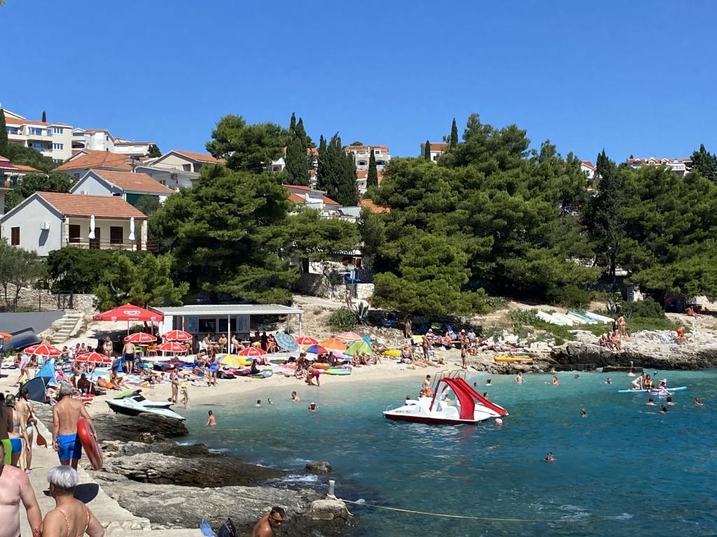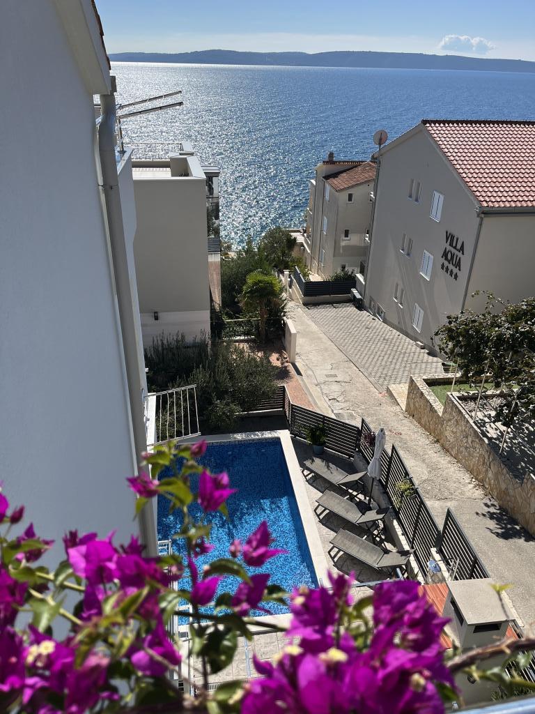 Wir haben eine Woche in einem Apartment verbracht, zwei Erwachsene und drei Kinder. Wir waren begeistert! Tolles Apartment, sauber und frisch. Der Balkon und die Aussicht waren fantastisch! Wir haben den Pool täglich genutzt und waren mehr als zufrieden. Wir haben auch ein paar Abende am Pool gegrillt und die Kinder fanden es gemütlicher als ein Restaurant. Die Lage ist super! Es gibt mehrere Bademöglichkeiten, entweder am Strand oder an den Felsen. Unser Jüngster ist vier Jahre alt und konnte problemlos zu Fuß zu den verschiedenen Stellen gehen. Es lag etwas im Zentrum und in einem größeren Lebensmittelladen, aber ohne einen angemessenen Ausflug war das kein Problem. Mit Uber sind wir problemlos unter anderem nach Trogir gefahren. Darko ist ein wunderbarer Gastgeber, der mit vielen Tipps kam und immer erreichbar war. Er war sehr um unser Wohlbefinden besorgt! Wir kommen wieder