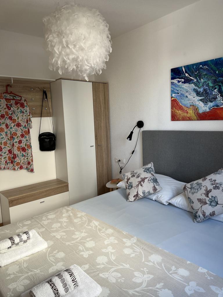 Ich wohnte mit meinem Mann und zwei Kindern in der Wohnung. Sie sind sehr komfortabel und angenehm eingerichtet. Sauber, ausgestattet mit allem, was Sie brauchen, Trockner, Bügeleisen, Geschirrspüler, Schere usw. und einer Waschmaschine, die den Job erledigt, weil Sie alles im Handumdrehen waschen können und die Wäsche nur wenige Stunden zum Trocknen braucht. Der Besitzer spricht Englisch und Sie können alles mit ihm besprechen oder um Hilfe bitten. Wunderschöne Aussicht von der Terrasse, geräumige und komfortable Terrassen, Moskitonetze an den Fenstern und Klimaanlage in jedem Zimmer. Der beheizte Pool ist ein Hit, der Bereich rund um den Pool ist sauber und angenehm und alles ist geschmackvoll dekoriert, wunderschöne Blumen, Accessoires, Lichter, die so schön aussehen. In der Umgebung gibt es ein gut sortiertes Geschäft in der Nähe, der Strand ist etwa ein paar hundert Meter entfernt und der beliebteste Strand der Gegend ist etwa 20 Gehminuten entfernt. Abgesehen von der schönen Aussicht und der Nähe zum Meer waren die Apartments selbst für mich sehr komfortabel und ich konnte mich dort wie zu Hause entspannen. Ich kann diesen Ort wärmstens empfehlen!