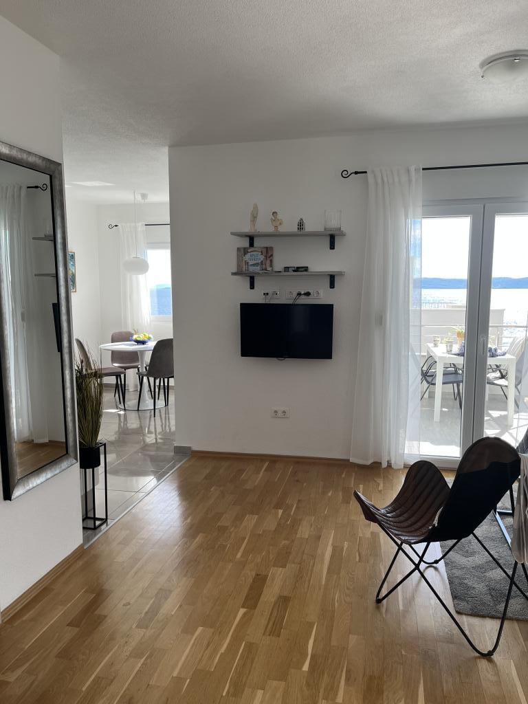 Hoher Standard der Wohnungen. Es ist genauso wie auf den Bildern. Sauber, ordentlich und es fehlt an nichts. Es gibt eine Spülmaschine, Mikrowelle, Kaffeemaschine, Waschmaschine, TV. Barbecue, Swimmingpool und Liegestühle vor Ort. Ganz in der Nähe des Meeres. Tolle Lage für kurze und lange Ausflüge, z.B. Trogir, Split, Šibenik, Biokovo, Dubrovnik, Mostar ... Der Gastgeber ist sehr nett und geduldig.