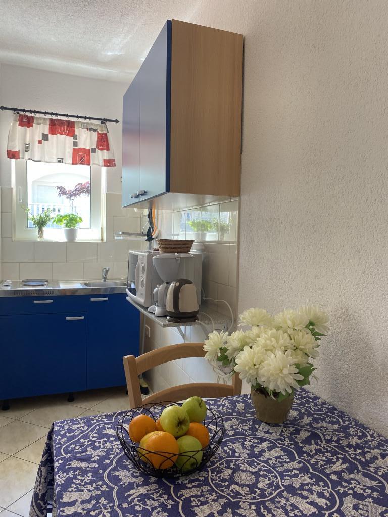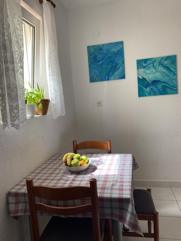 Schönes Apartment mit allem, was man braucht. Tolle Aussicht vom Balkon und eine schöne Terrasse zum Frühstücken und Abendessen. Es ist ruhig und eine schöne Gegend. Perfekt für uns als vierköpfige Familie, 2 Kinder im Alter von 9 und 11 Jahren. (Es geht ziemlich steil hinunter zum Meer (das in der Nähe ist) und der Gehweg ist rau, daher empfehle ich keine Kinderwagen oder Rollstühle.) Einfacher Zugang, egal ob Sie von den Klippen mit Leitern schwimmen möchten, was meinen Mädchen besser gefiel, oder ob Sie zum Strand mit Kieselsteinen gehen möchten. Das Wasser ist wunderbar!! So klar! Wir hatten 2 wundervolle Wochen und Darko und seine Eltern sind großartig und so hilfsbereit.