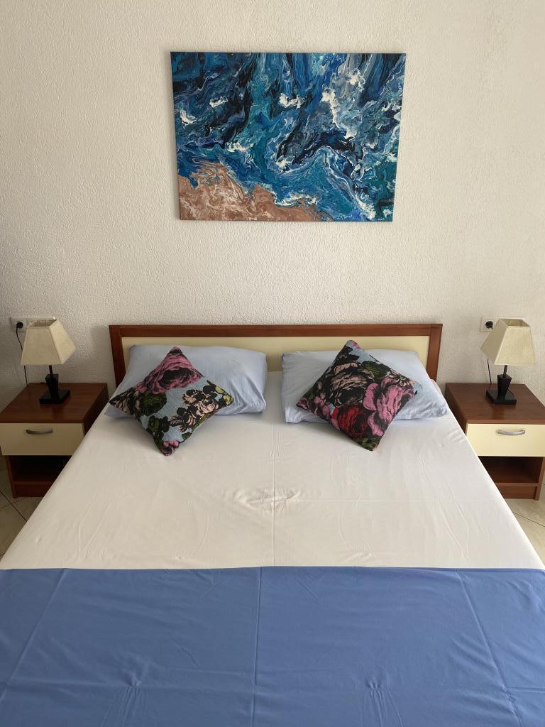 Eine gemütliche Wohnung im 3. Stock mit Meerblick von einem Balkon. Zwei Balkone bieten die perfekte Wahl zwischen Sonne und Schatten. Einer ist etwas größer und eignet sich perfekt zum Sitzen und Essen. Eine gute Küche mit allem, was man zur Bewältigung des Alltags braucht. Eine Klimaanlage in der Küche, gute Ventilatoren in den Schlafzimmern. Zwei gute Schlafzimmer mit Doppelbetten. Es gibt gute Parkmöglichkeiten innerhalb der Tore und die Gegend ist ruhig und man fühlt sich sicher und geborgen. Sehr guter Kontakt zum Vermieter und Familie. Sie waren äußerst zuvorkommend und hilfsbereit.