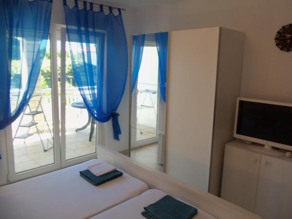 Modern eingerichtete zwei Studio-Apartments im Erdgeschoss mit Balkon und Blick auf das Meer und die Inseln. Es gibt auch einen Grill, und der Parkplatz ist im vollen Schatten von Felsen. Landschaftsgarten mit Zitrone, Orange, Mandarine, Kiwi, Äsche, Siphon und einem kleinen Feigenbaum. Alles ist 200 m vom Meer entfernt. 500 m von einem Restaurant oder 1 km von Geschäften, Postämtern, Apotheken usw. entfernt.