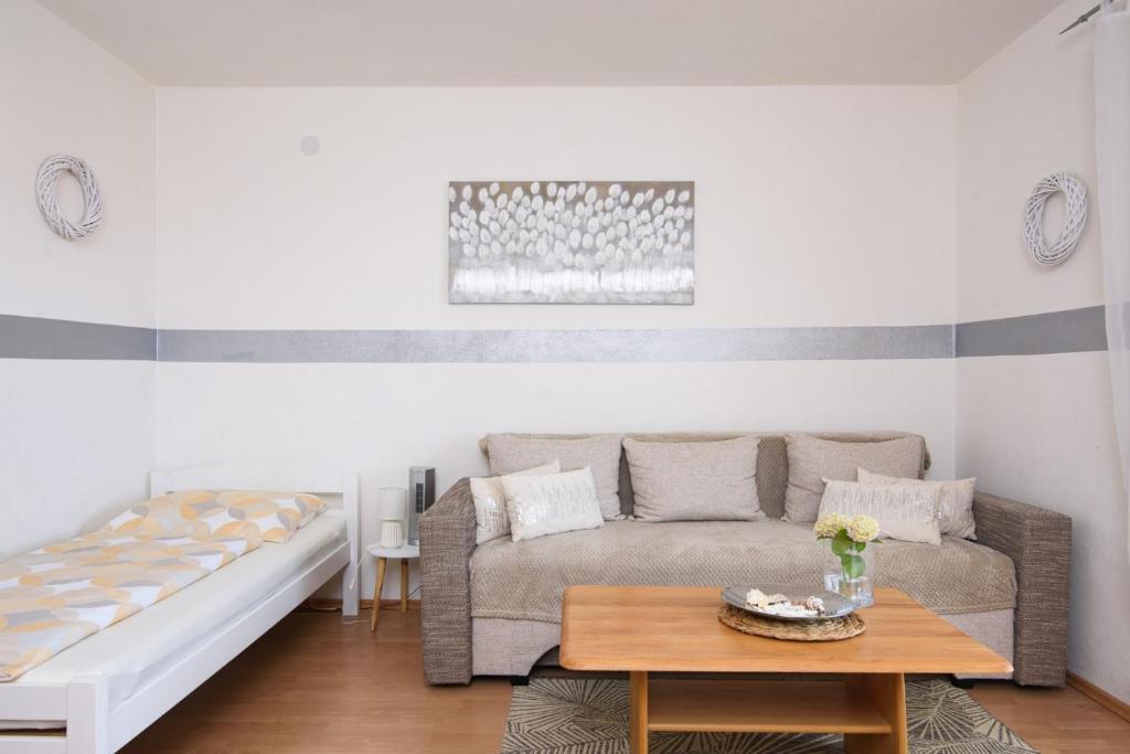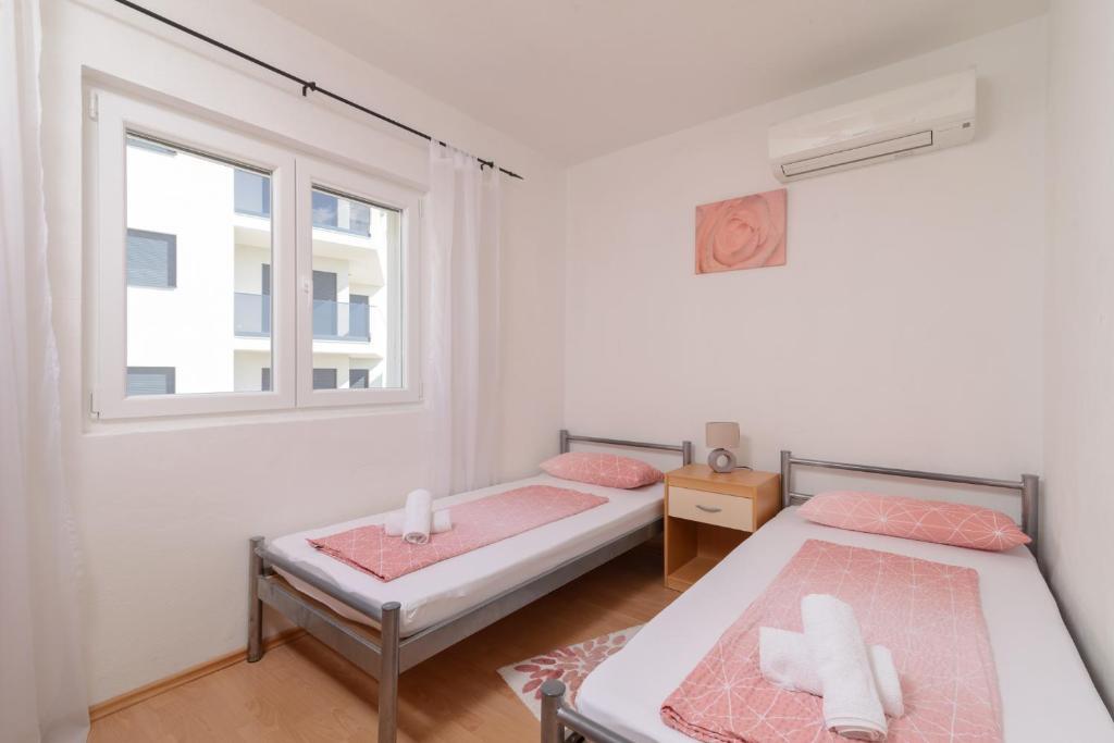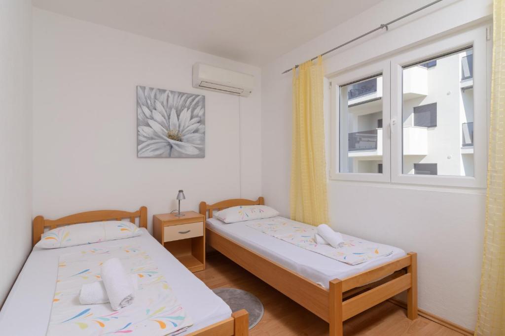 Die Apartmani Branka liegen nur 4 Gehminuten vom Strand der Copacabana entfernt und bieten einen Garten sowie klimatisierte Unterkünfte mit Balkon und kostenfreiem WLAN. Jede Wohneinheit verfügt über eine Terrasse mit Meerblick, Sat-TV, einen Essbereich, eine gut ausgestattete Küche und ein eigenes Badezimmer mit Badewanne und Haartrockner. Ein Kühlschrank, ein Backofen, ein Kochfeld und ein Wasserkocher sind ebenfalls vorhanden. Der Archäologische Park Salona ist 26 km und das Park-Mladeži-Stadion 29 km von den Apartmani Branka entfernt. Der Flughafen Split ist 6 km entfernt; ein kostenpflichtiger Flughafentransfer wird angeboten.