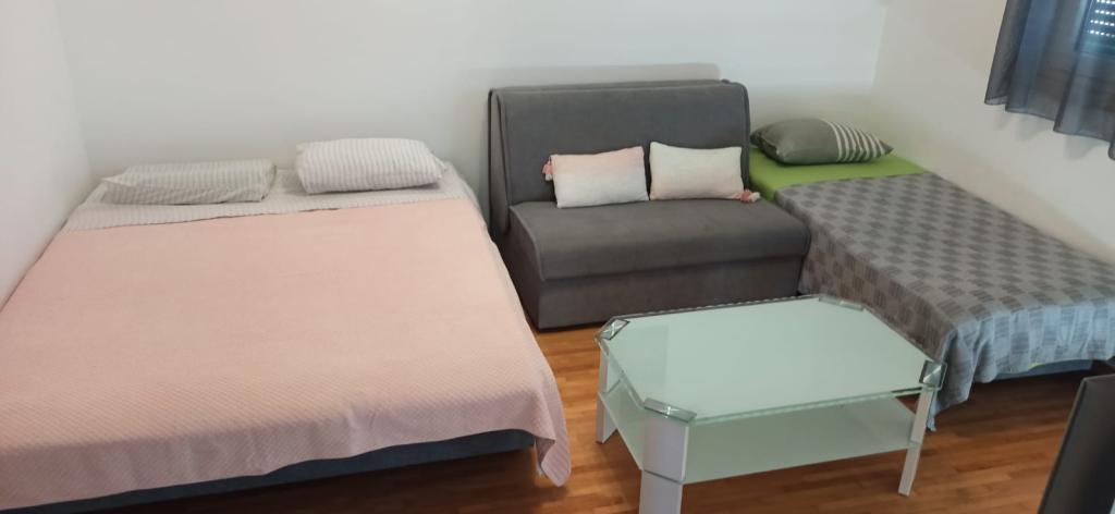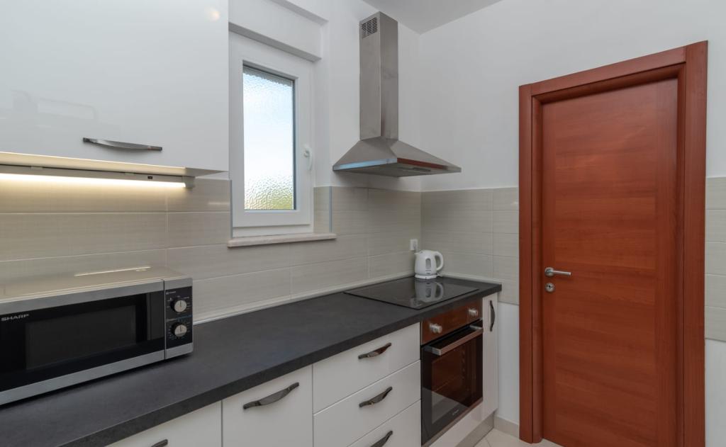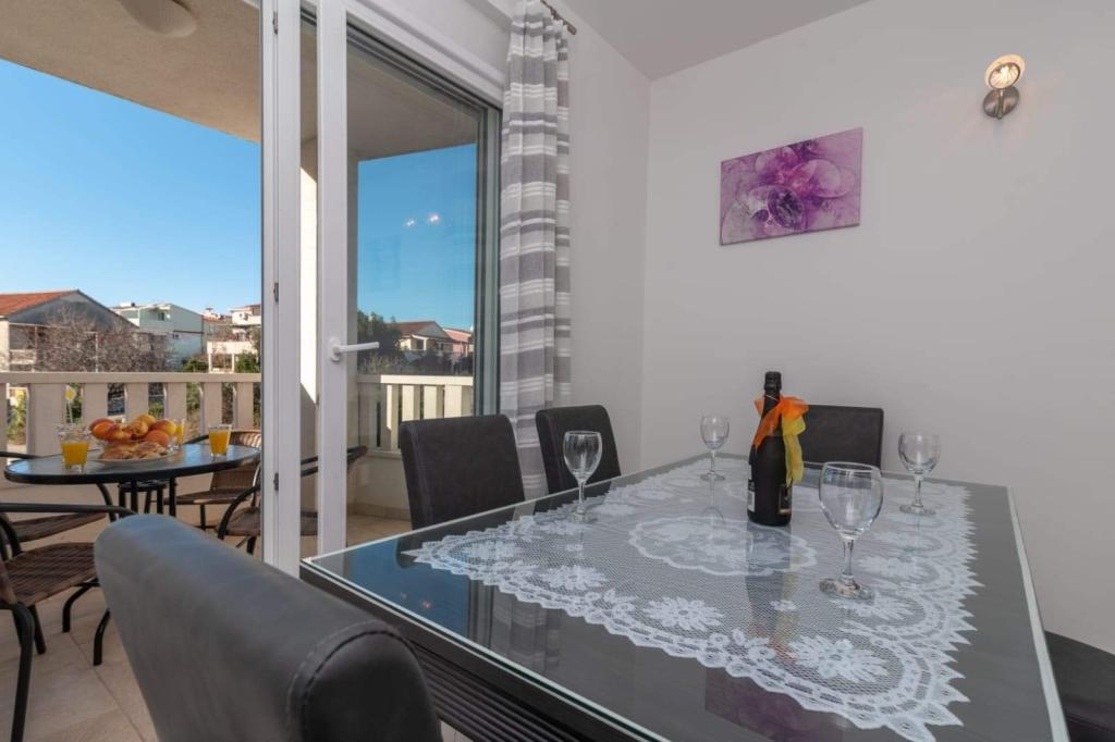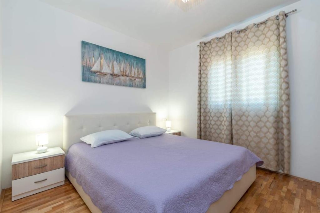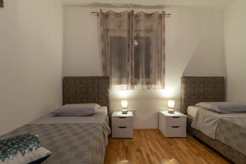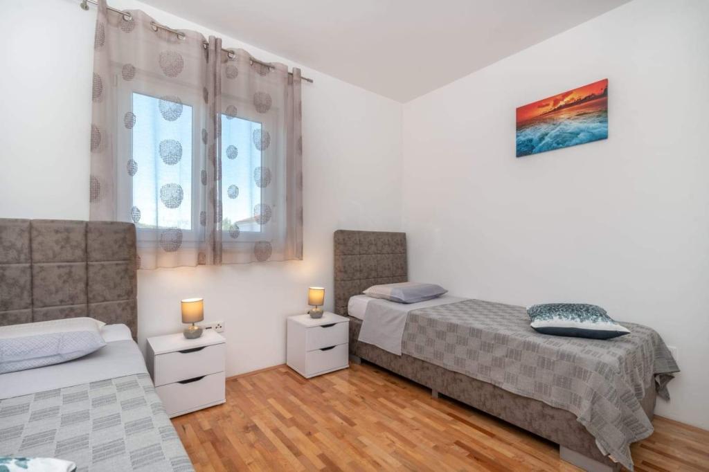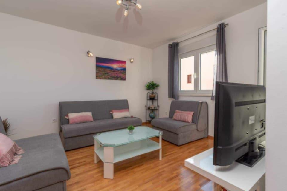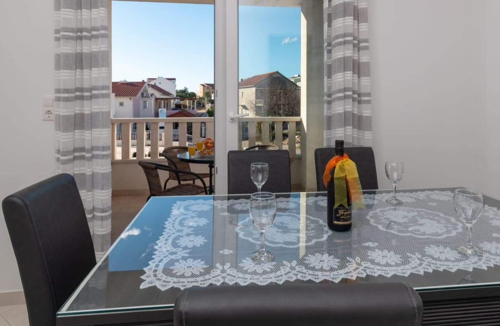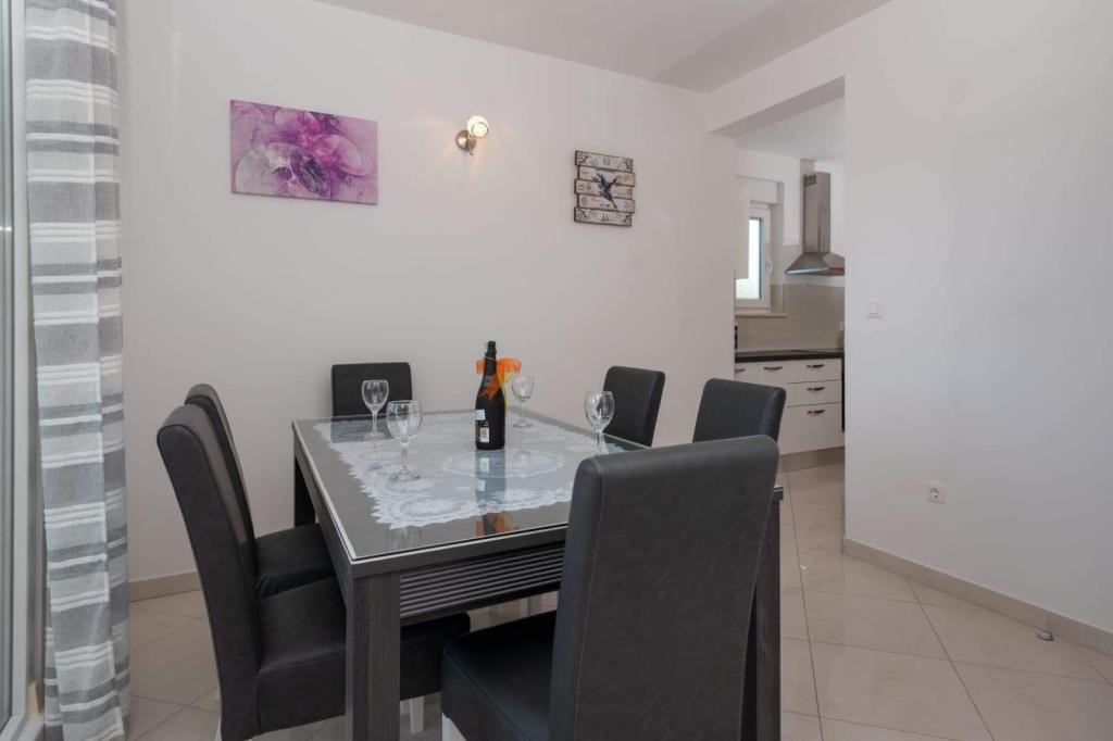 Die Ferienwohnung befindet sich auf der Insel Čiovo in einer ruhigen Bucht im Okrug Gornji – Rastići und ist ideal für einen Familienurlaub. Sie liegt 200 m von Felsstränden und 400 m von Sandstränden entfernt, während der berühmte Strand von Copacabana nur 1,6 km entfernt ist. Die UNESCO-Stadt Trogir ist nur wenige Kilometer entfernt. Die Wohnung befindet sich im ersten Stock, hat eine Fläche von 72,5 m² mit einem 7 m² großen Balkon und bietet Platz für bis zu 6 Personen (bei Bedarf 7), inklusive Babybett. Zur Ausstattung gehören Klimaanlage, kostenfreies WLAN und ein privater Parkplatz. Ein besonderes Highlight der Wohnung ist das im Preis inbegriffene Fitnesscenter und Spielzimmer im Untergeschoss mit Fitnessgeräten, Crosstrainer, Tischfußball, Dartscheibe und Fahrrad – ideal für Entspannung und Familienspaß.