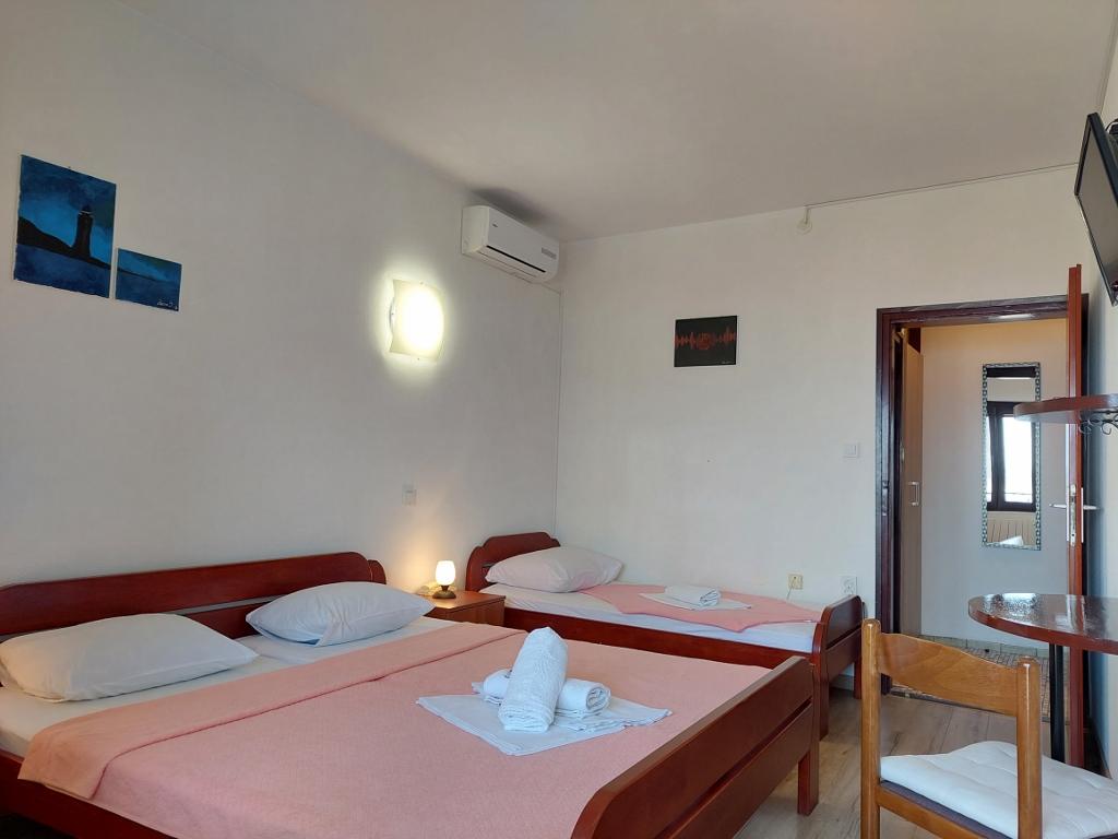 Die Pension Klaudija, mit über 40-jähriger Familientradition, bietet 14 voll ausgestattete Zimmer mit Dusche, WC, Balkon (12 Zimmer mit Meerblick), Zentralheizung, Telefon, Sat-TV und Klimaanlage. Zu den weiteren Annehmlichkeiten gehören: private Parkplätze, eine Lounge mit Sat-TV, ein Safe, ein Restaurant mit Bar und Gartenterrasse, ein schöner Garten mit Springbrunnen sowie kostenfreies WLAN. Unsere Gäste und alle anderen Besucher können das Restaurant mit 80 Plätzen und die Terrasse in angenehmer Atmosphäre und mit freundlichem Personal genießen. Hier erwarten Sie zahlreiche Spezialitäten der lokalen und internationalen Küche.