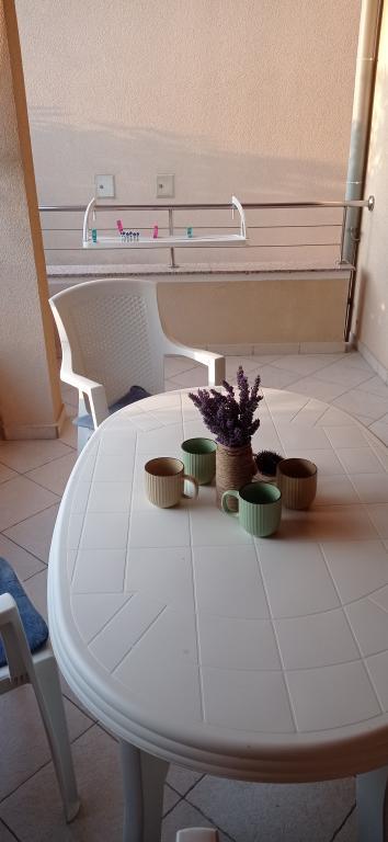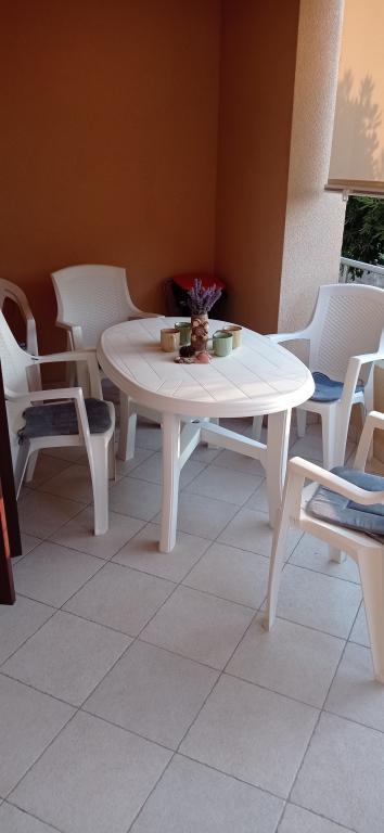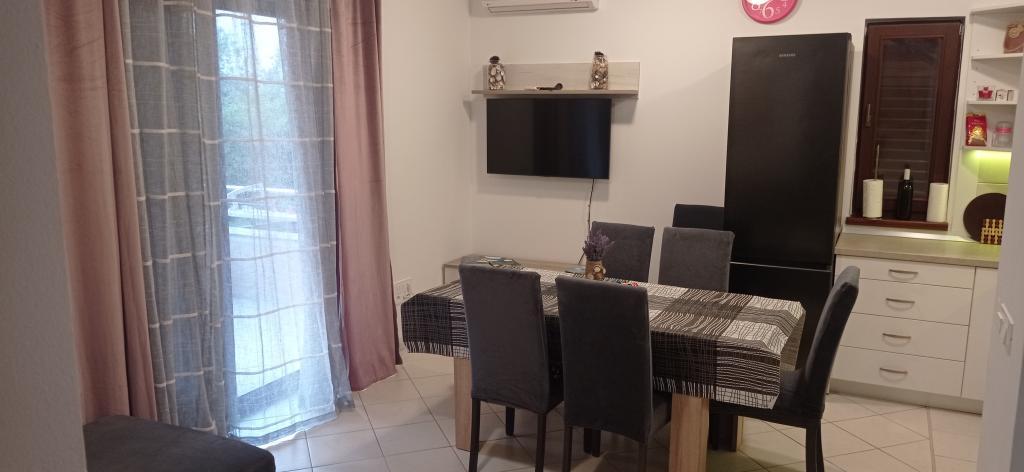 Die Wohnung befindet sich in einer ruhigen Mehrfamilienhausanlage im Erdgeschoss eines Gebäudes. Es ist komplett mit Haushaltsgeräten ausgestattet. Die Anlage liegt 250 m vom ersten Felsstrand und 2 Autominuten vom Sandstrand im Stadtzentrum entfernt. Im Zentrum gibt es ein Geschäft, ein Restaurant, 2 Cafés am Strand und eine Kirche. Es gibt auch eine neu renovierte Promenade entlang des Meeres von den Apartments zum Zentrum. Die Insel eignet sich ideal für den Sommerurlaub, da sie sich ideal zum Radfahren, Wandern und Joggen auf der Inselspitze eignet. Viele Sehenswürdigkeiten.