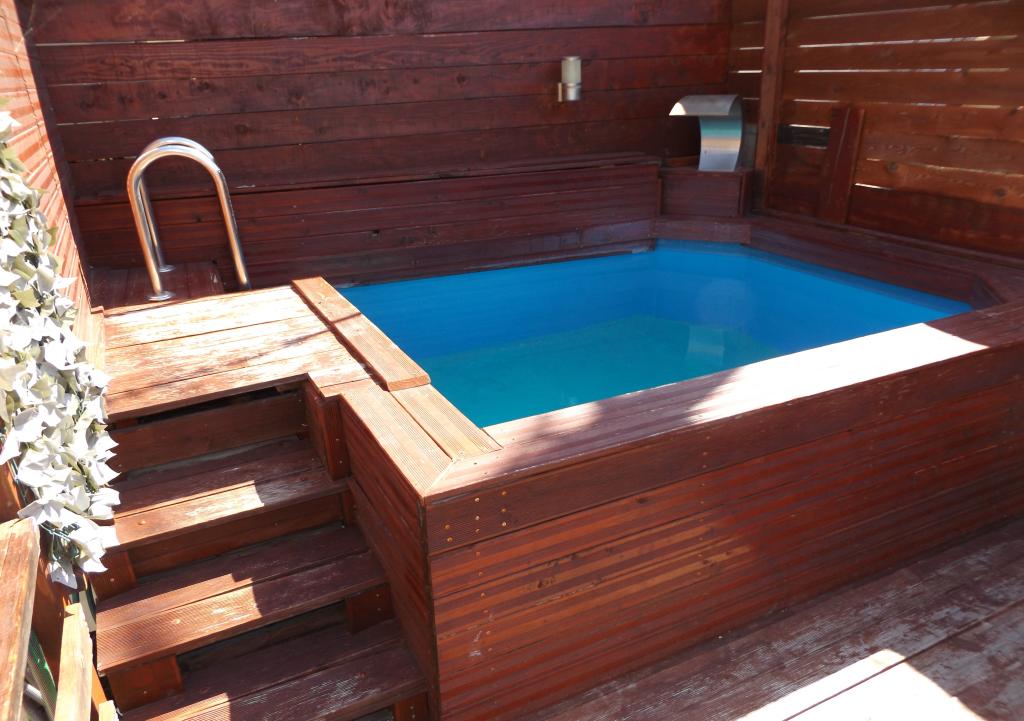 Kurtaxe ist im Preis inbegriffen.Kleiner Pool, Liegestühle, überdachter Parkplatz, jede Wohnung hat einen eigenen Balkon, Sitzterrasse, Grill, überdachte Sitzecke.