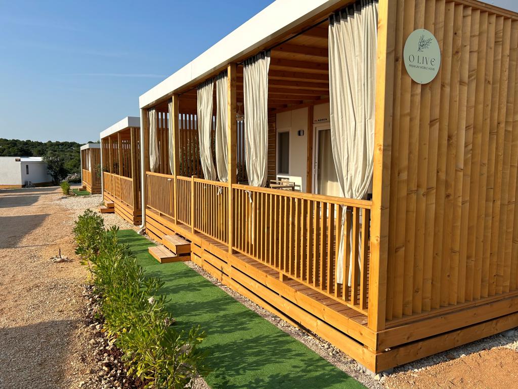 O'LIVE Premium Mobile Home, ein neues Mobilheim ab Frühjahr 2023, ideal für einen Urlaub in der friedlichen Oase Lučica, mit einem unvergesslichen Blick auf die Kornaten. Machen Sie Urlaub für Körper und Seele! Das Haus ist komplett ausgestattet und verfügt über ein modernes Design, eine Größe von 63 m2 mit einer überdachten Außenterrasse. Das Haus verfügt über eine reich ausgestattete Küche mit Essbereich, ein Schlafzimmer mit einem Doppelbett 160x200 mit einem Badezimmer, ein Schlafzimmer mit zwei Betten 90x200, ein zusätzliches Badezimmer (beide Badezimmer sind komplett ausgestattet - Toilette, Dusche, Handtücher, Haartrockner) und ein Teil neben dem Esszimmer, in dem sich ein Schlafsofa mit Abmessungen zum Schlafen befindet (Möglichkeit eines Bettes für zwei weitere Personen). Auf der überdachten Terrasse finden Sie Möbel zum Entspannen und einen Esstisch. Neben dem Haus gibt es eine Solardusche, einen Gasgrill, Liegestühle und einen Parkplatz. Die Endreinigungsgebühr ist im Übernachtungspreis enthalten. Die Anmeldung und Kurtaxe erfolgt direkt im Camp an der Rezeption, wo auch der Schlüssel zum Ferienhaus abgeholt wird.