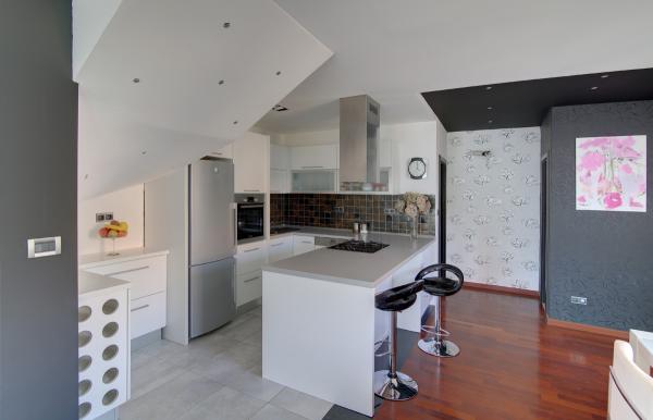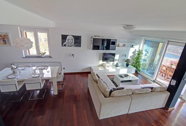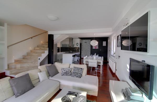 Modern eingerichtete zweistöckige Luxus-Wohnung in dem Haus, 130 m2 befindet sich in der Nova Mokošica, nur 12 km von der Altstadt von Dubrovnik entfernt. Das Hotel liegt in einem ruhigen Dorf in der Nähe der Olivenhaine, Bäumen und Grün, während die Terrasse und Balkon bietet einen schönen Blick auf den Fluss Ombla, ACI Marina und dem Hügel Srd. Auf der oberen Etage gibt es zwei Doppelzimmer (Doppelzimmer), ein Badezimmer mit Dusche und ein Schlafzimmer mit Bad (Zimmer mit Bad) mit Whirlpool-Badewanne für zwei Personen und einem Haartrockner und einem eigenen Balkon ausgestattet. Auf der unteren Etage befindet sich ein separates WC und eine moderne, voll ausgestattete Küche (Herd, Backofen, Geschirrspüler, Waschmaschine, Kühlschrank, Mikrowelle, Geschirr, Wasserkocher, Toaster), Esszimmer mit einem geräumigen Wohnzimmer mit LCD-TV, internes LKW und Terrasse . Die Wohnung ist klimatisiert, mit kostenlosem W-LAN (Wi-Fi), einen privaten Parkplatz und einen Grill im Freien. Der nächste Strand ist 5 km, Lebensmittelgeschäft 150 m im Umkreis von 300 Metern gibt es Bars, Fast Food, Bistro.